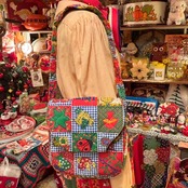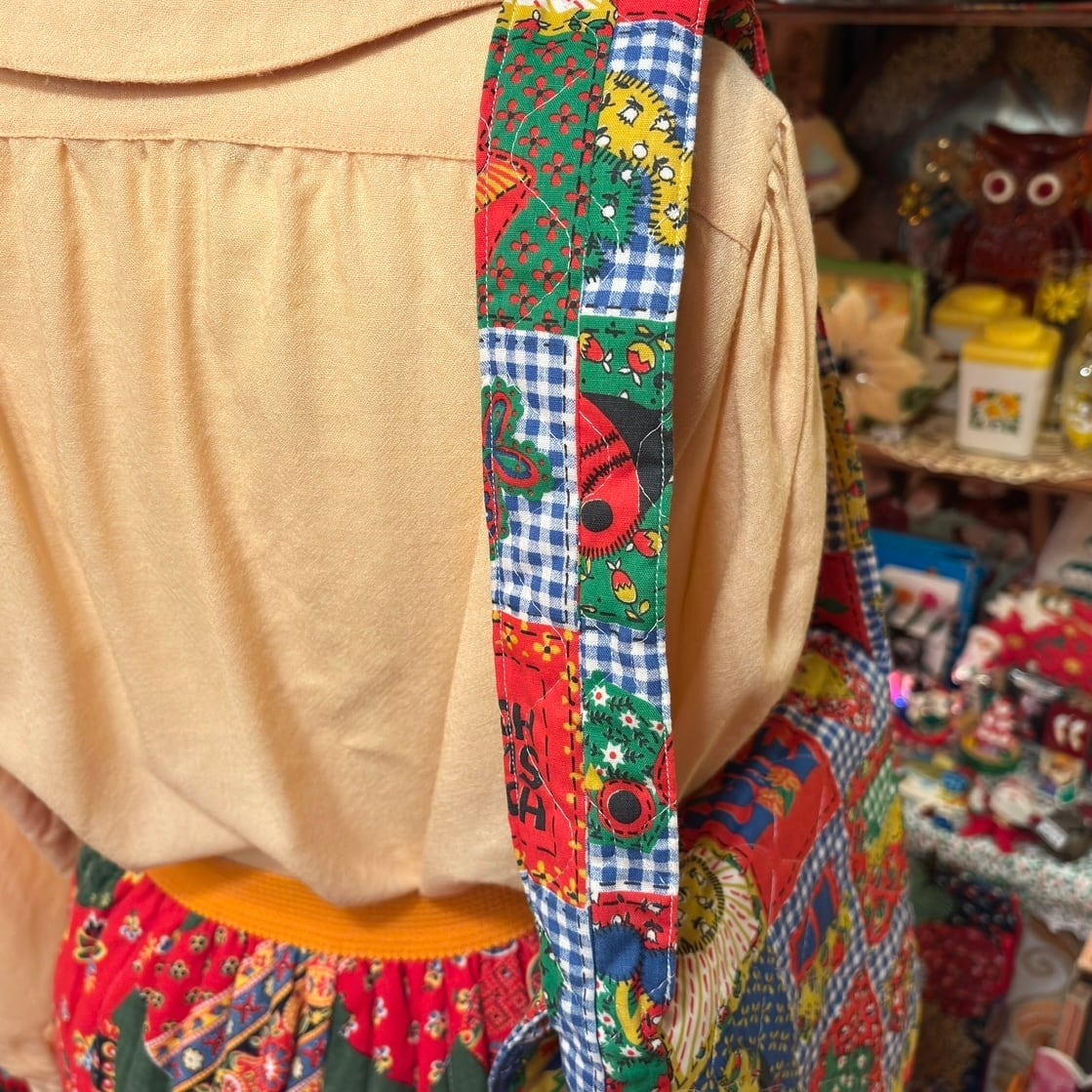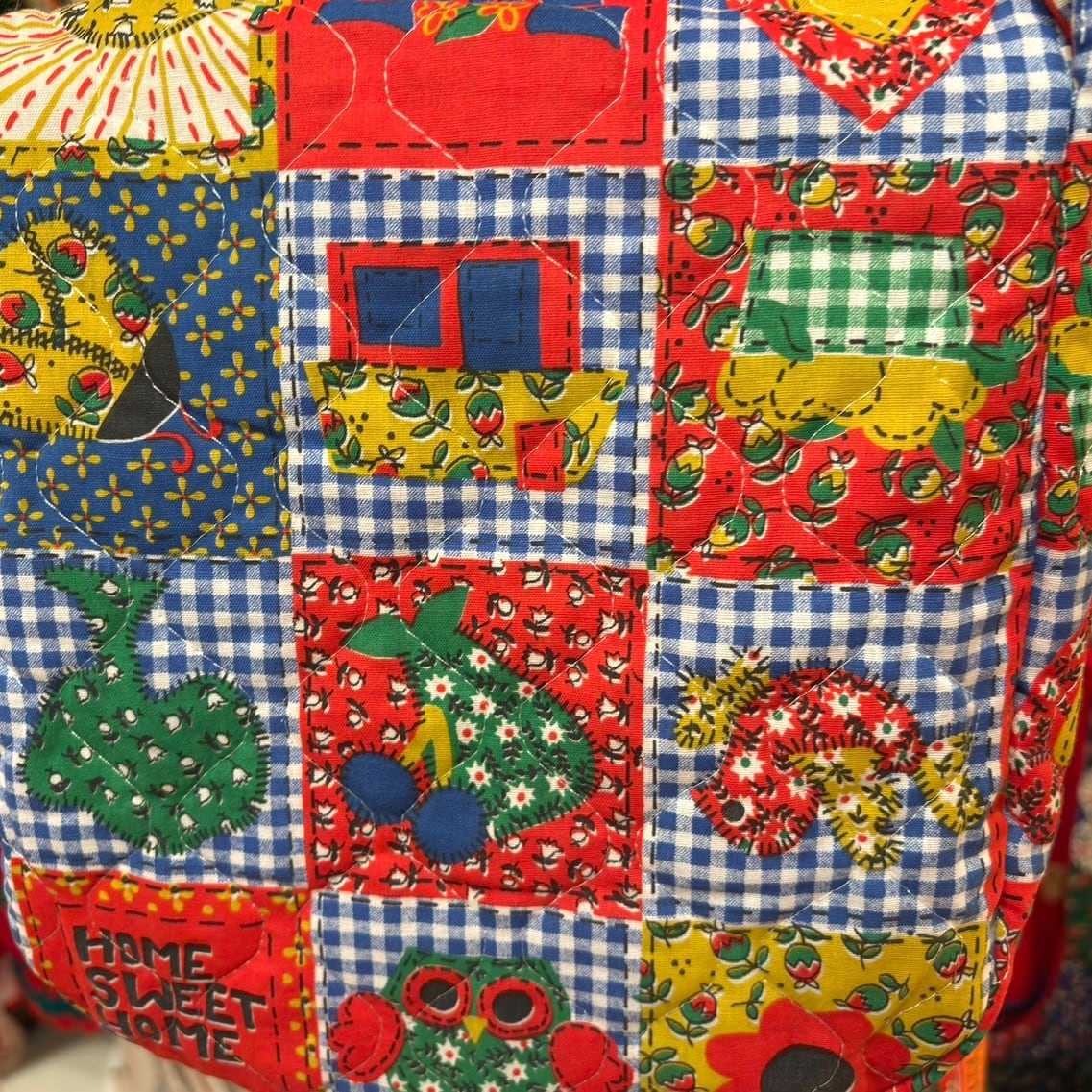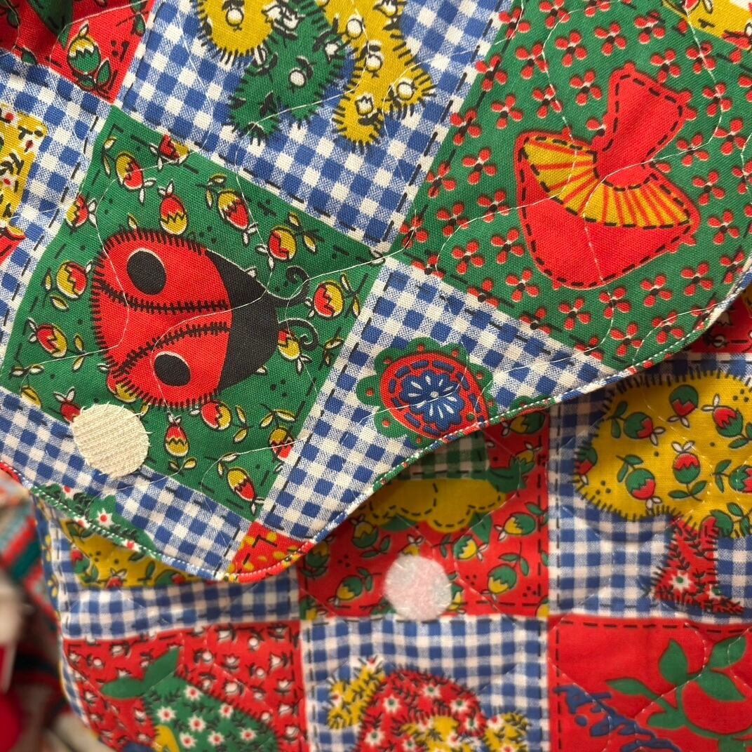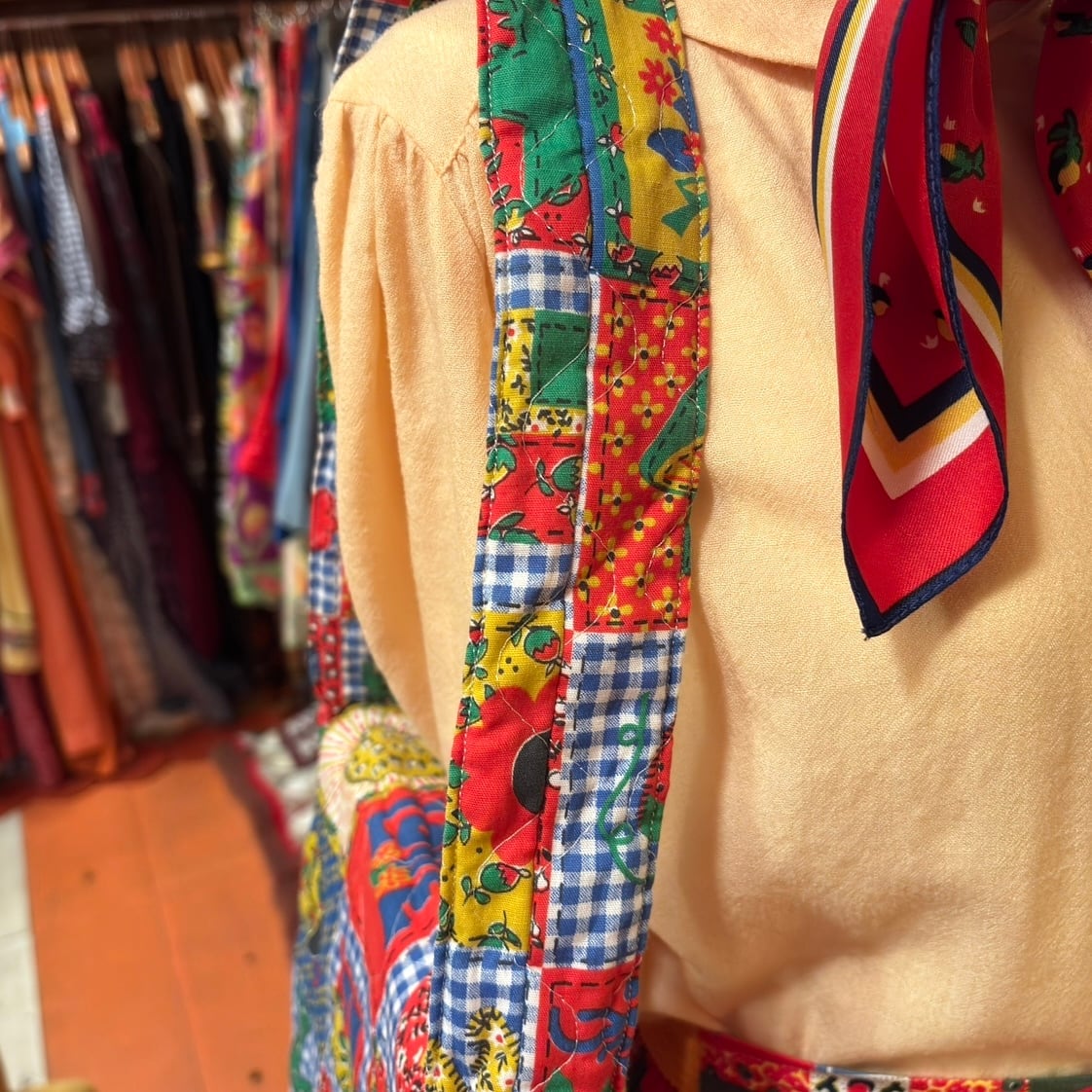 70年代ならではな生地感やパッチワーク柄で、お出かけするたびにhappyな気持ちになれそうなバッグかと思います。