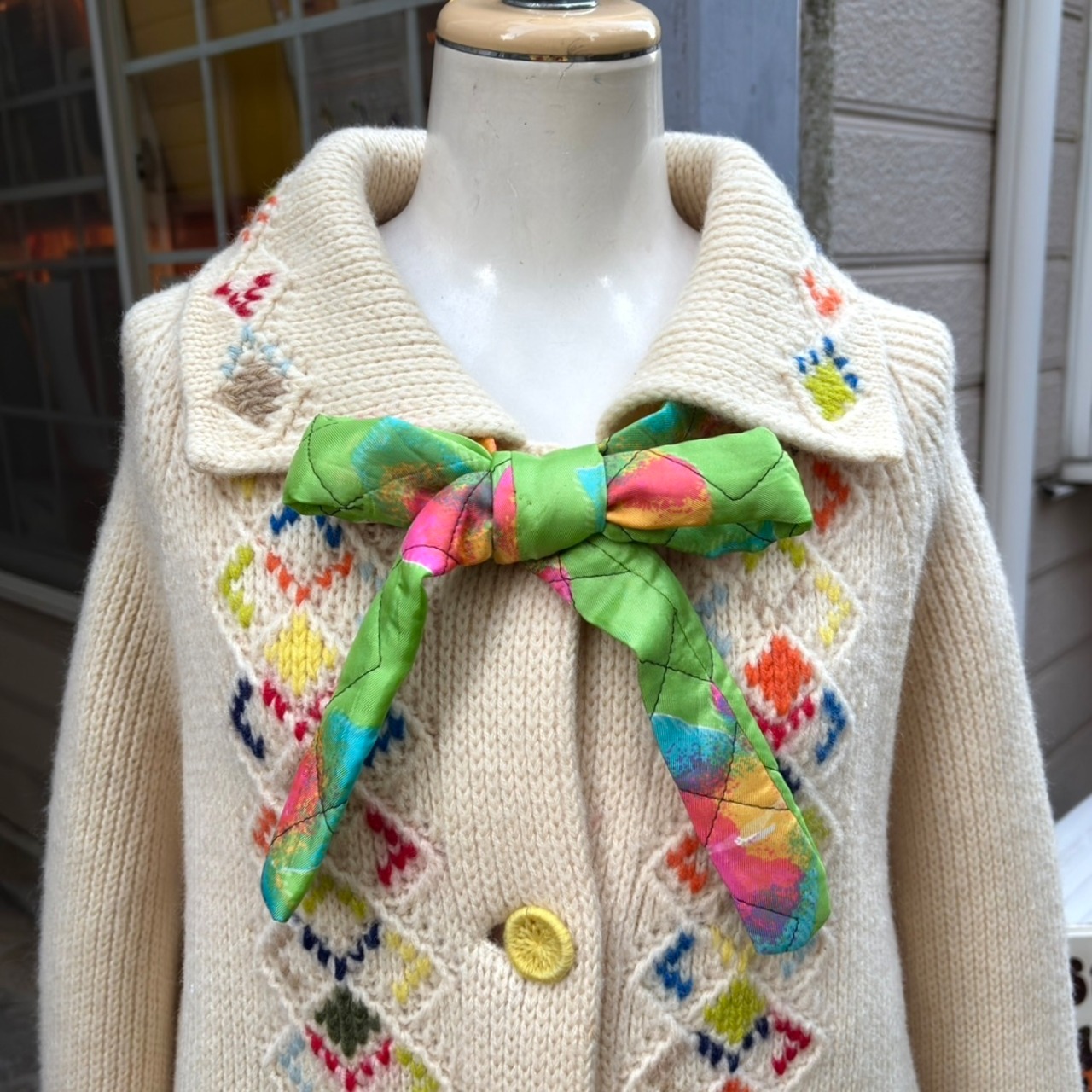 経年によるステッチの若干のほつれが見られますが柄に紛れてあまり気にならない程度かと思います。