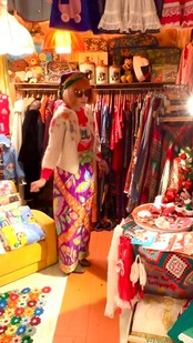 ウエストはゴムのフリーサイズで、片側の裾にスリットが入っています。