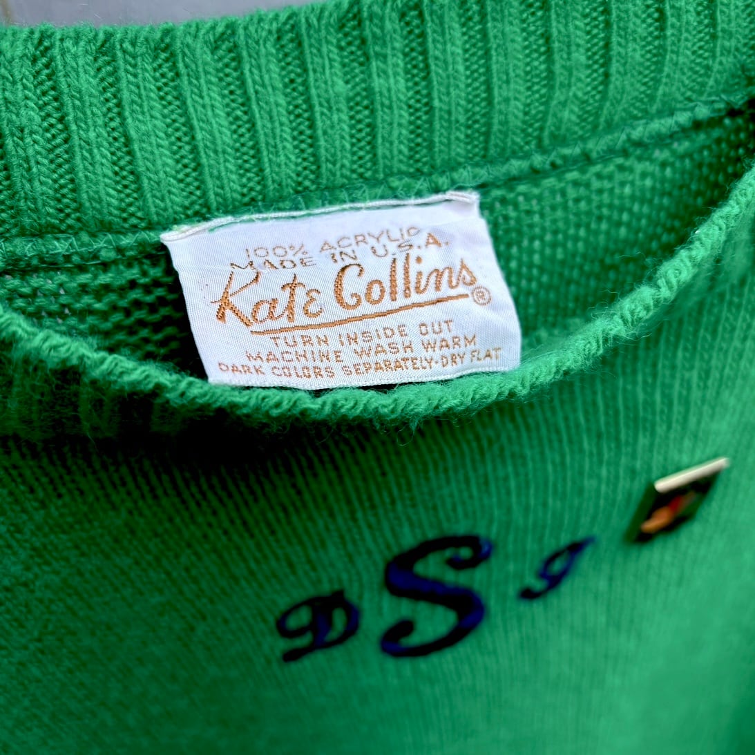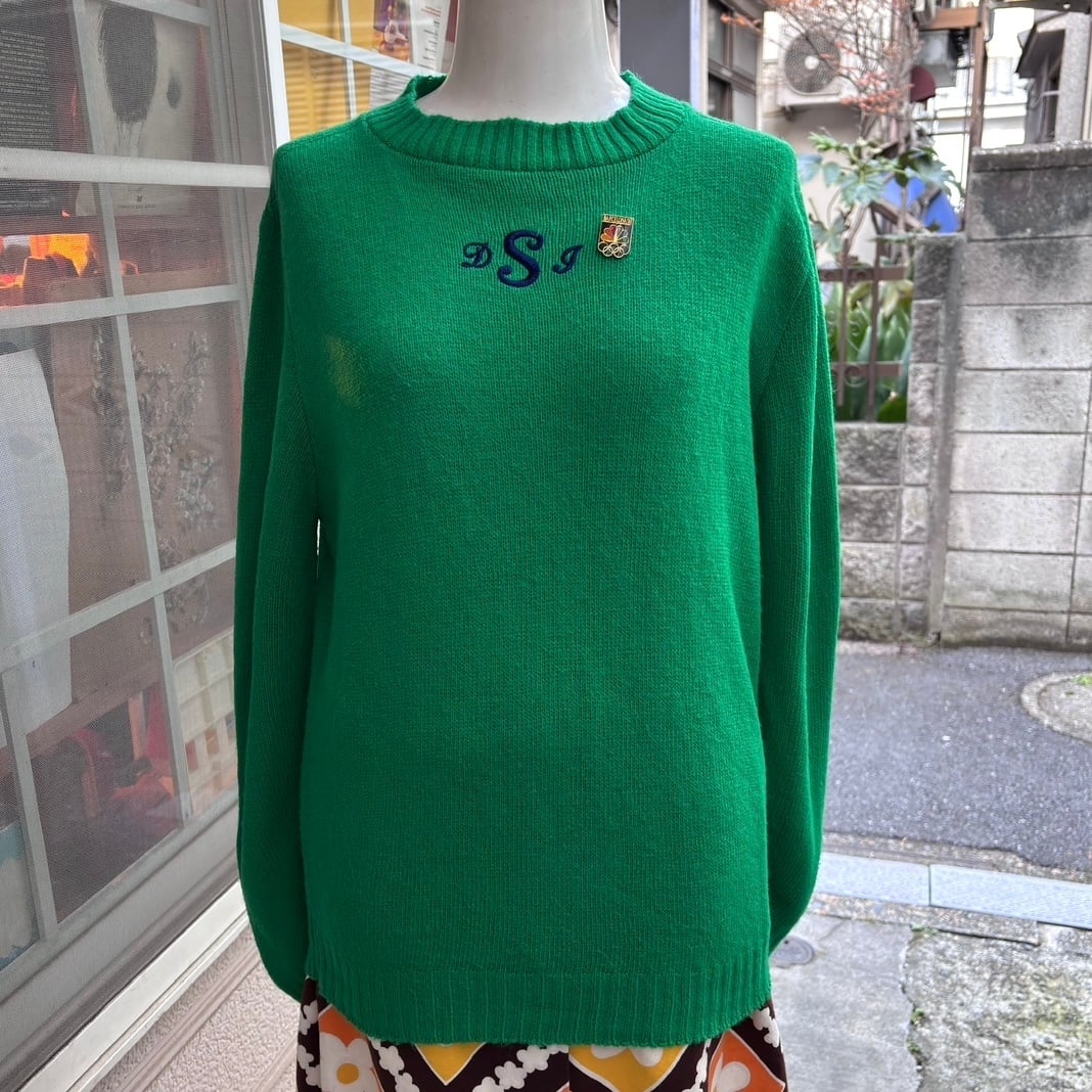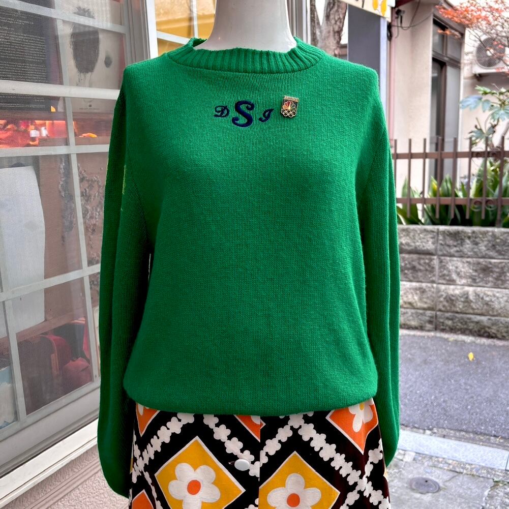 70年代 ヴィンテージ グリーン ロゴ刺繍 セーターです。