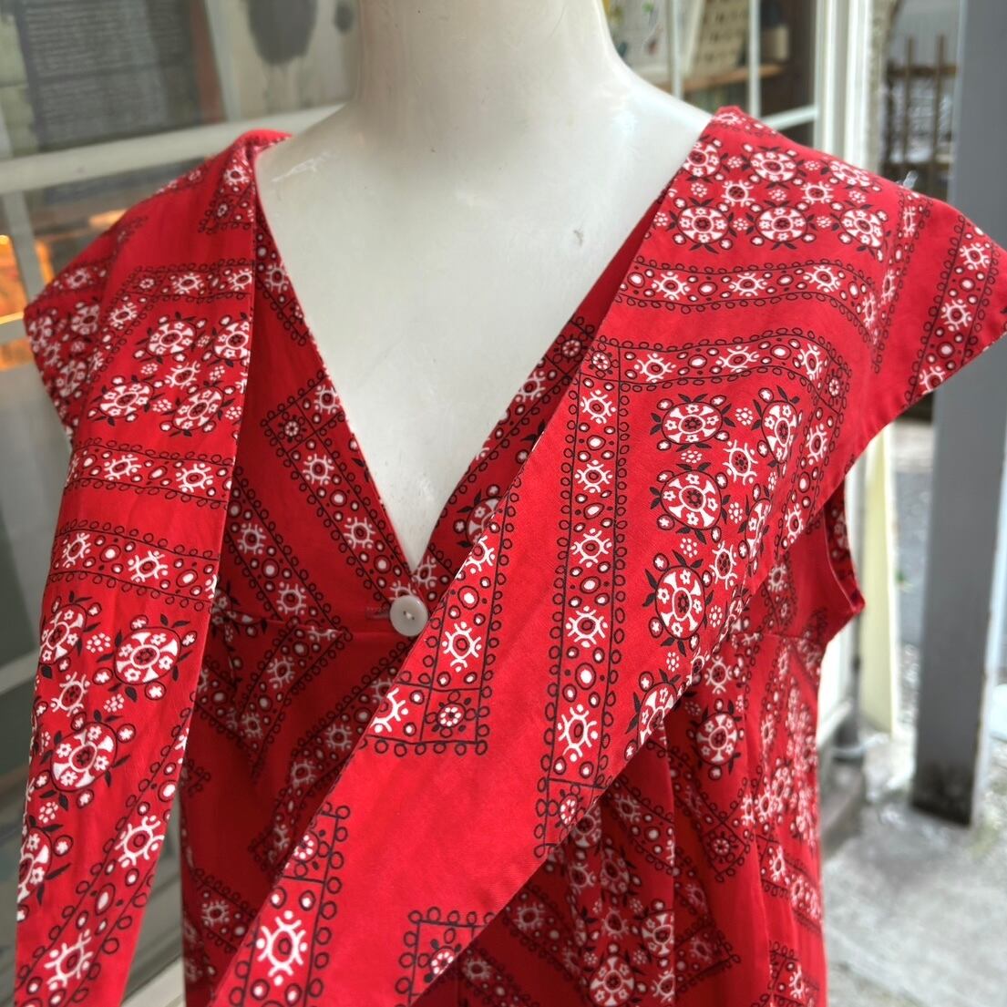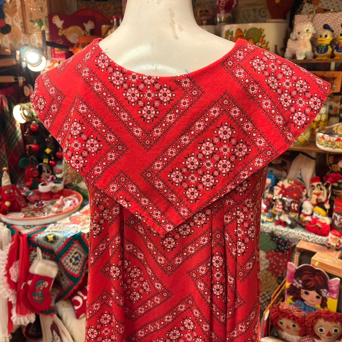 70年代 ヴィンテージ バンダナ柄 セーラーカラー スリーブレス ドレスです。