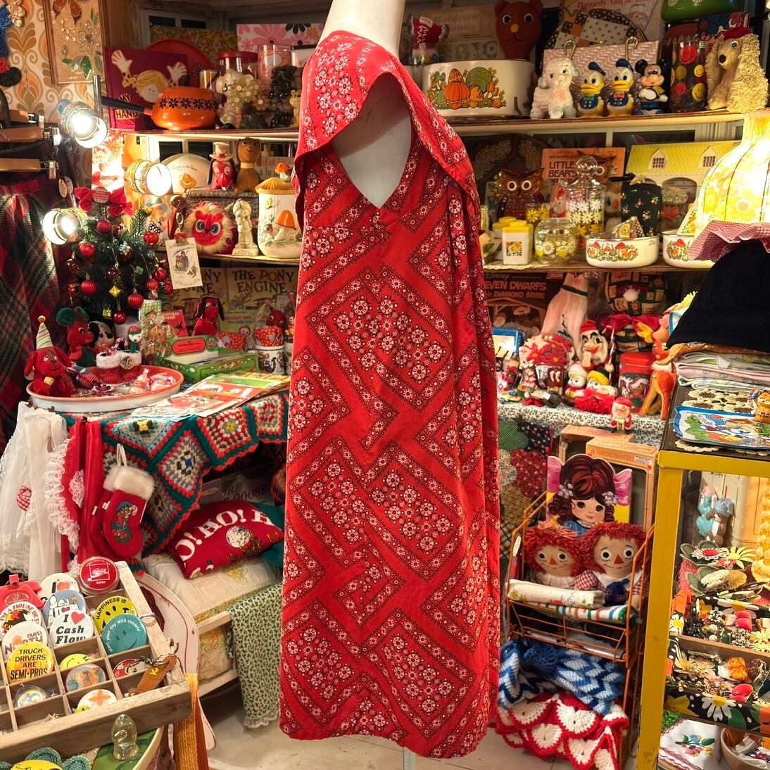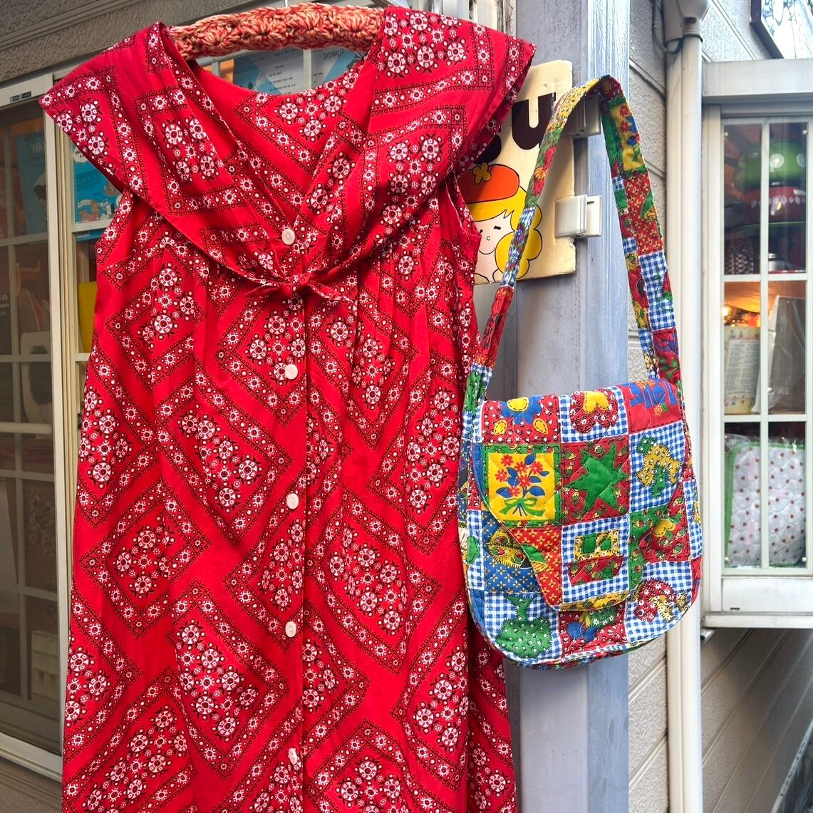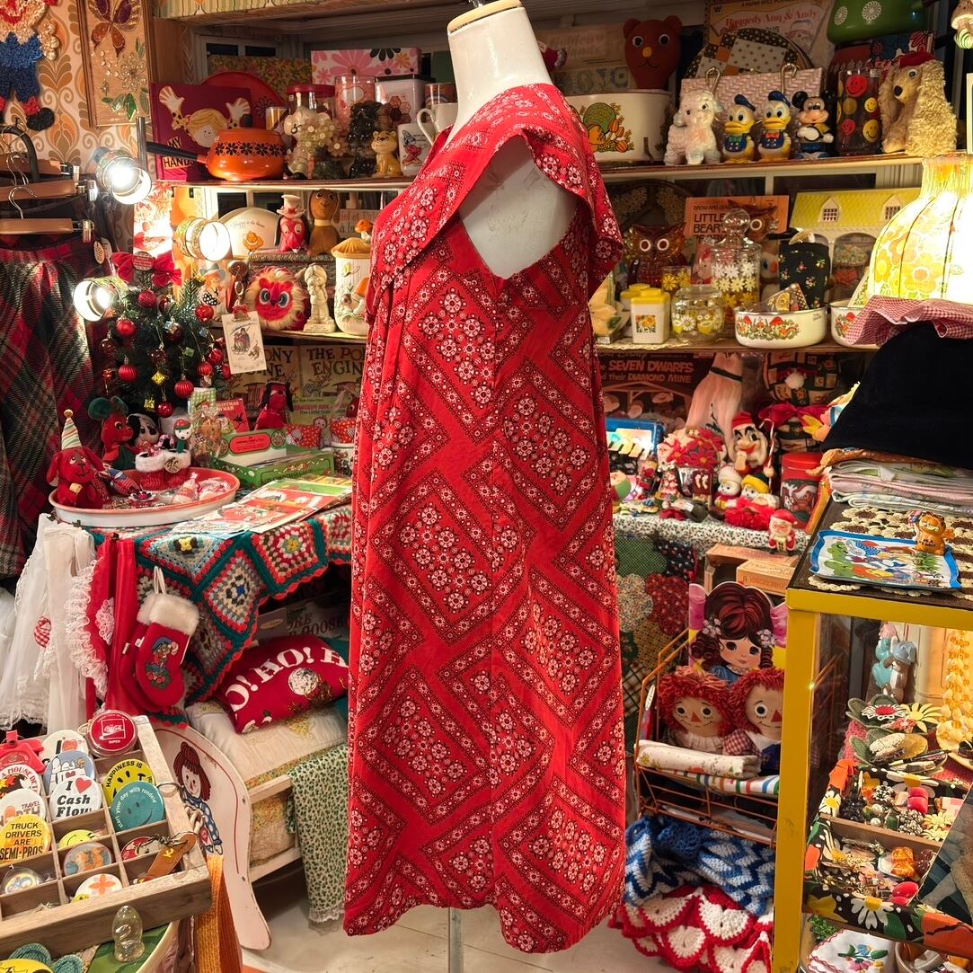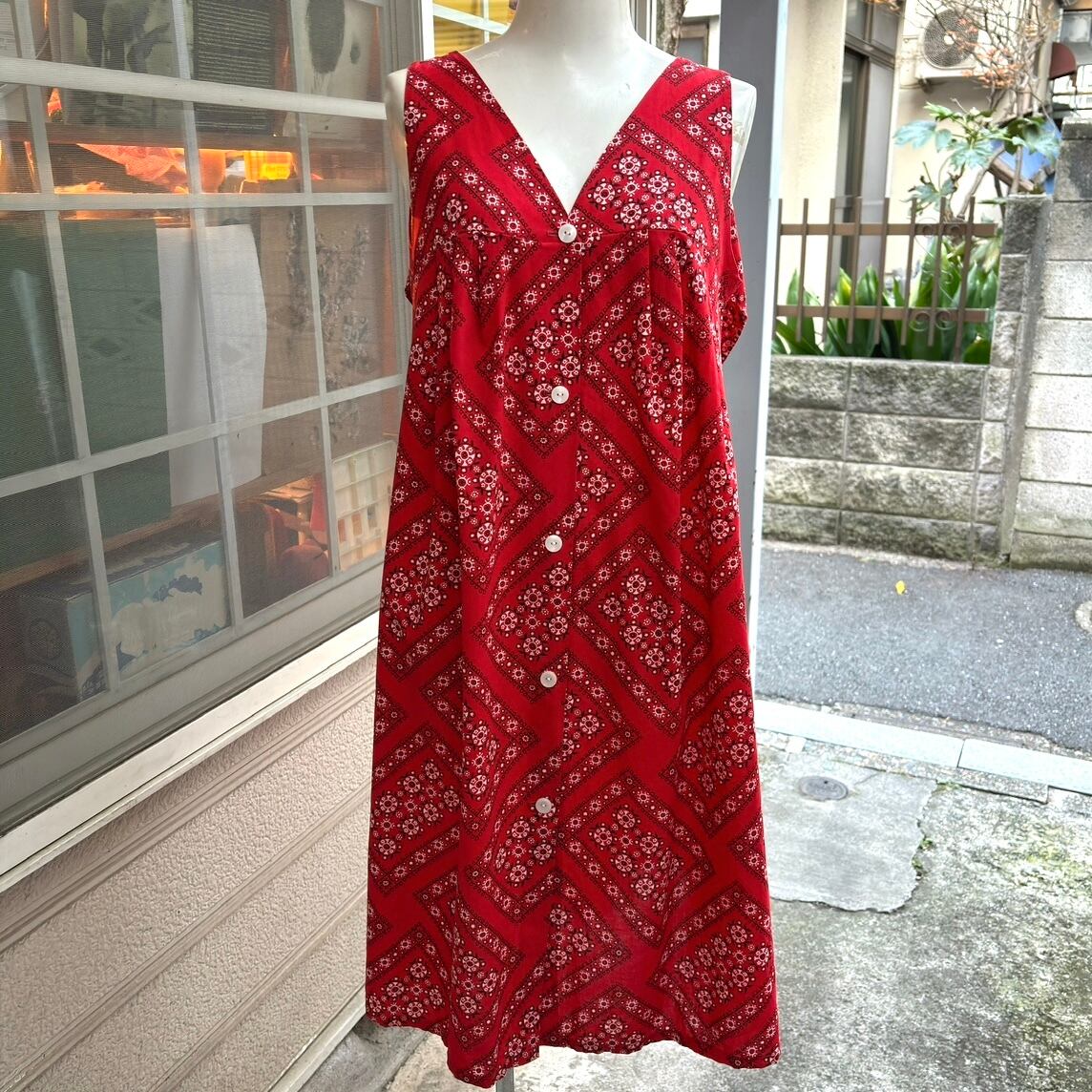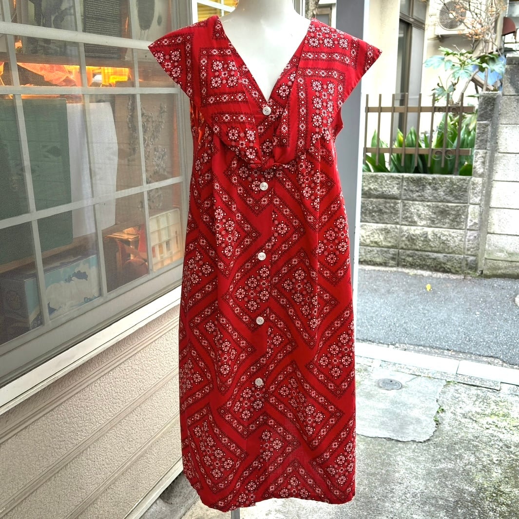 70'S USA Vintage bandana pattern sailor color sleeveless dress。