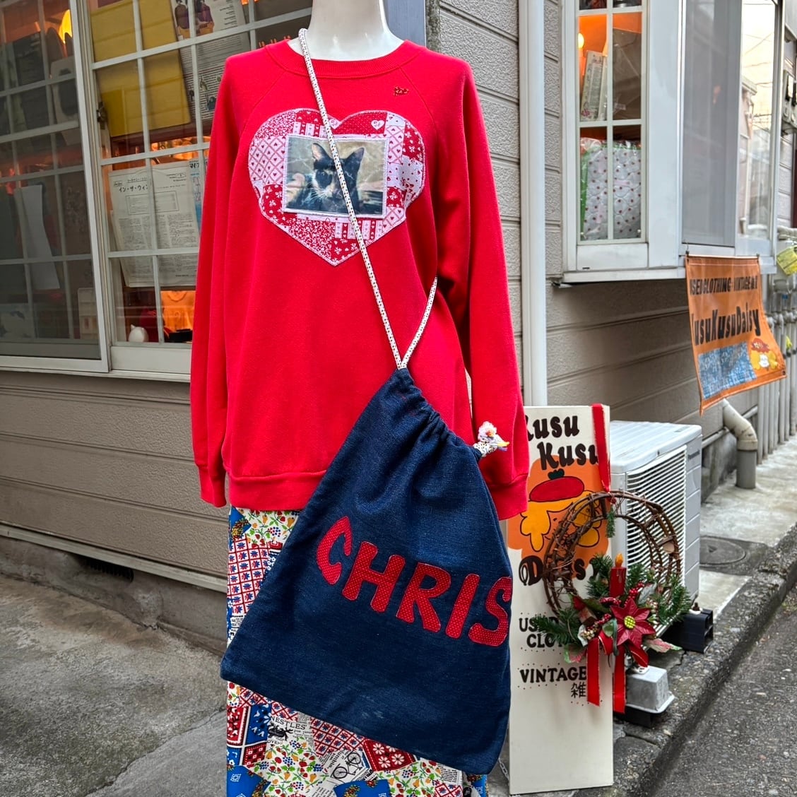 70'S USA Vintage patchwork denim laundry bag CHRIS。