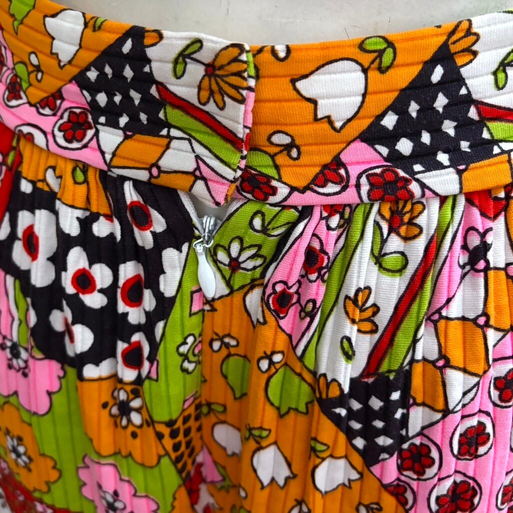 70'S USA Vintage crazy pattern flower patchwork printed long skirt。