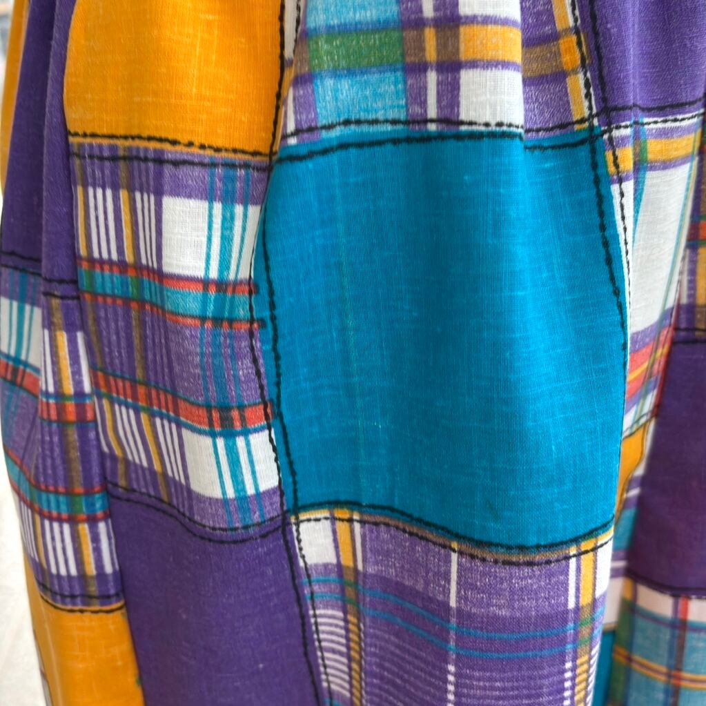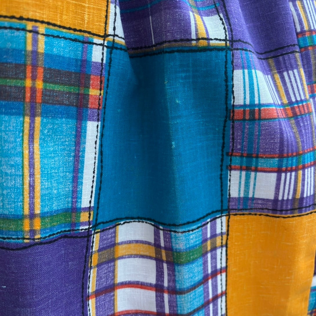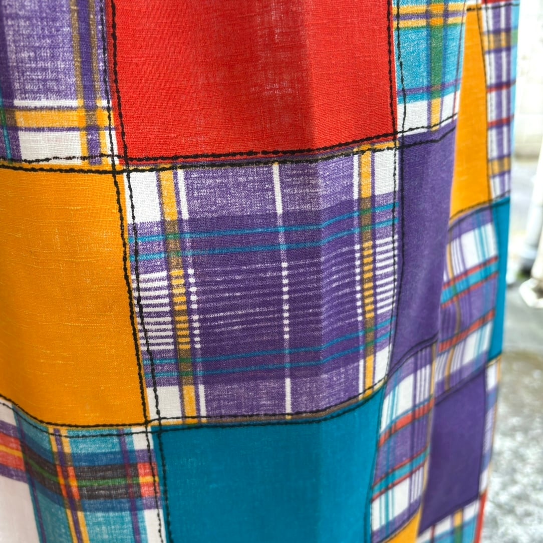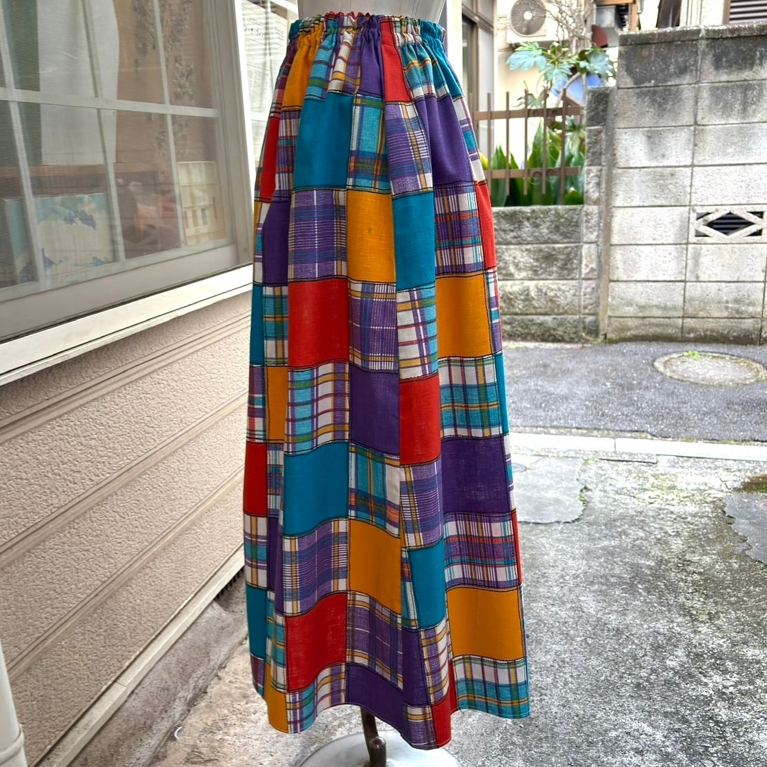 70'S USA Vintage colorful plaid patchwork pattern skirt。