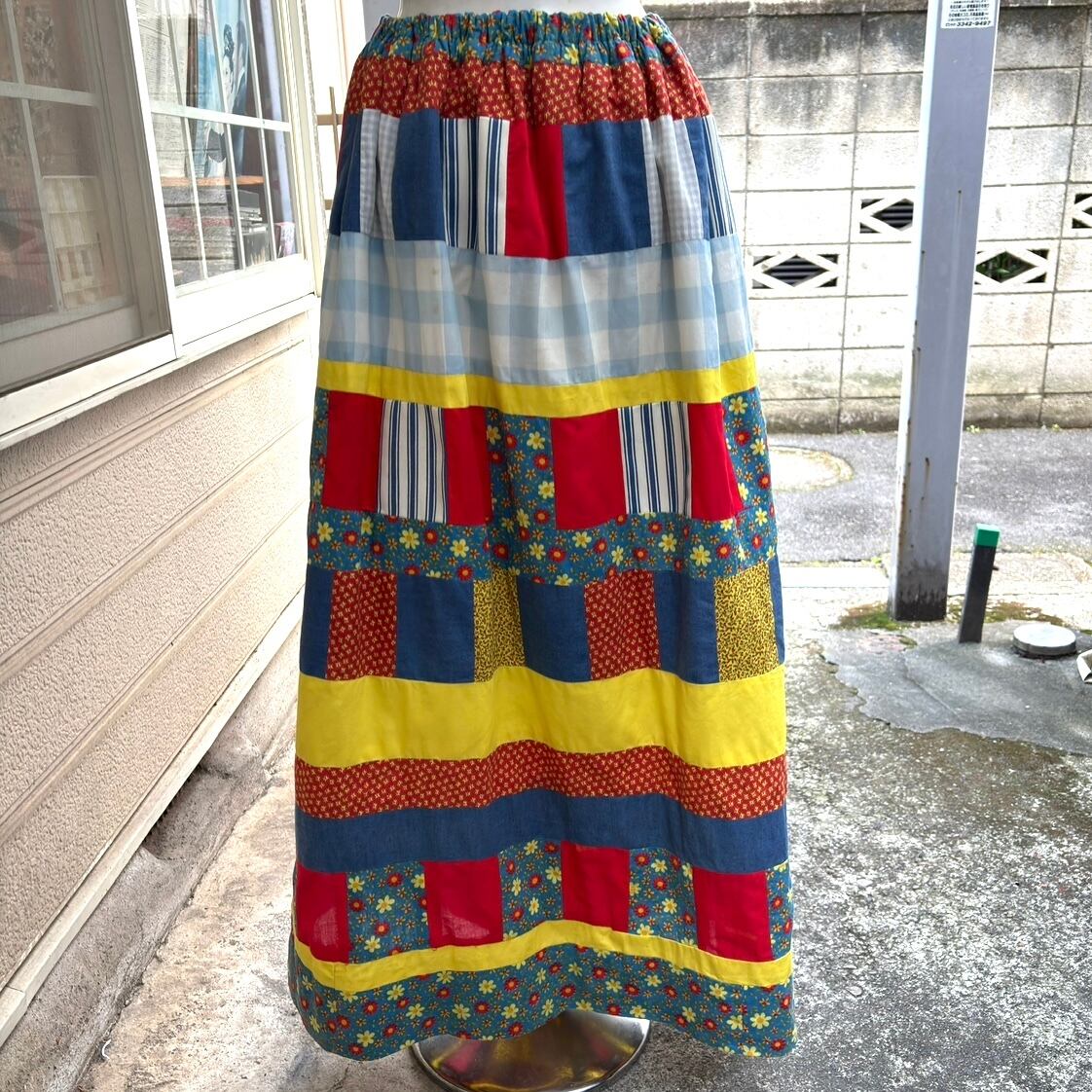 70'S USA Vintage real patchwork long skirt。