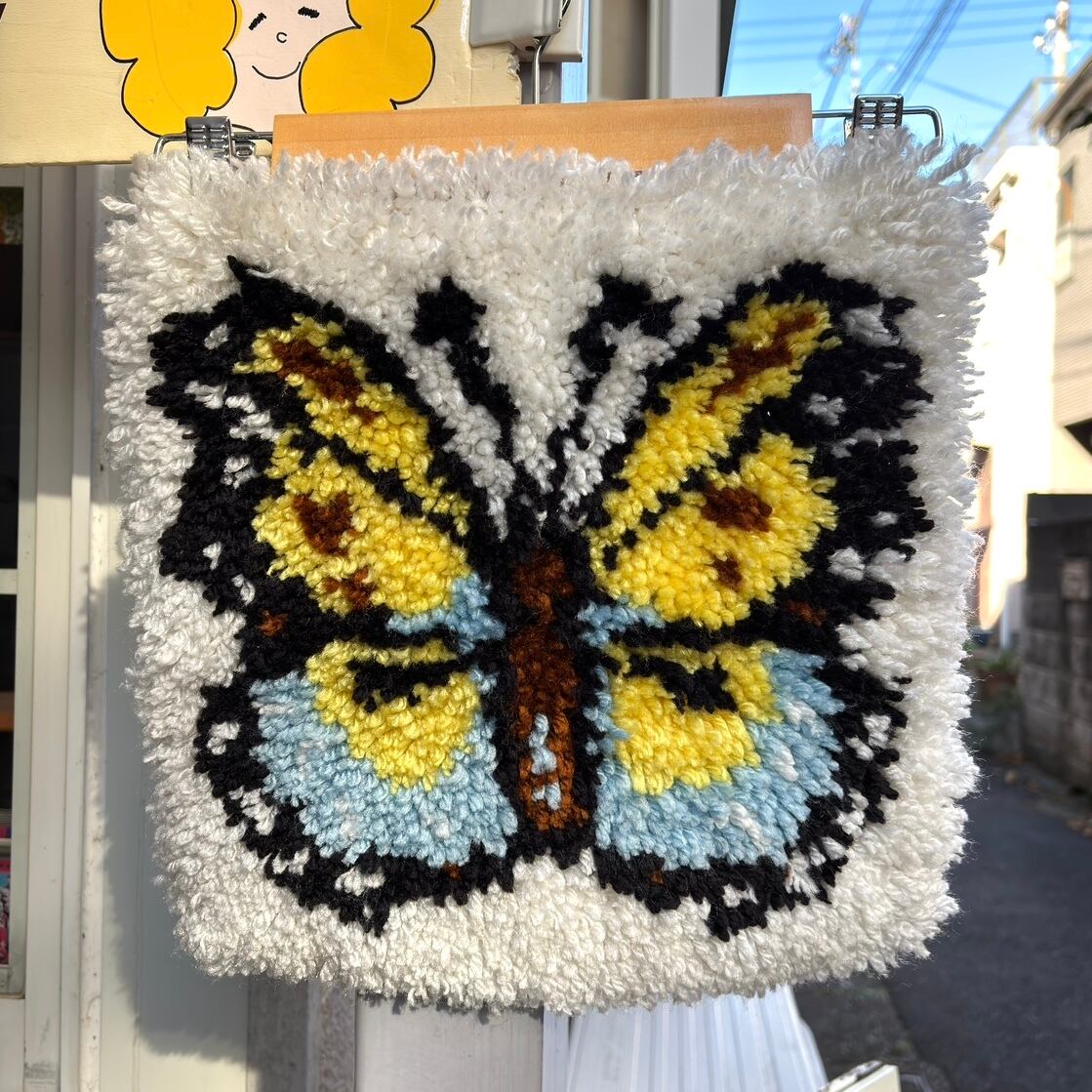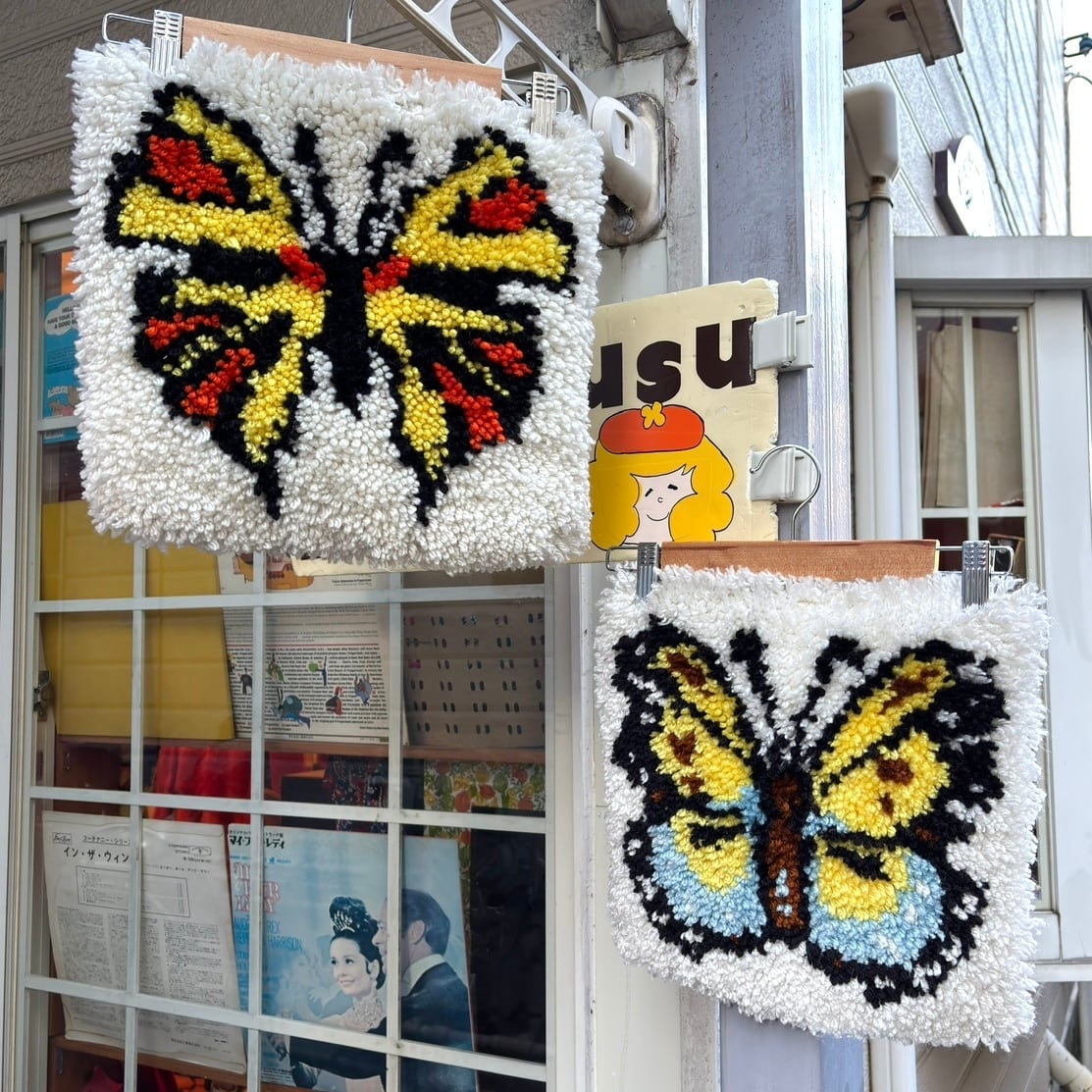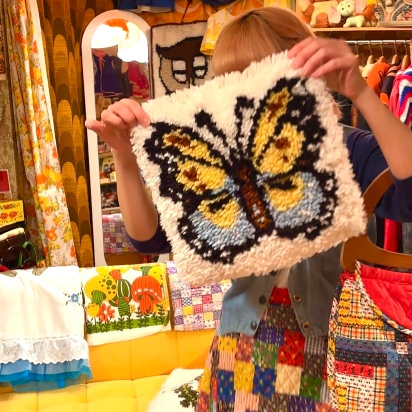毛足の長いラグの作りやバタフライ柄が70年代ならではな、とっても可愛いアイテムです。