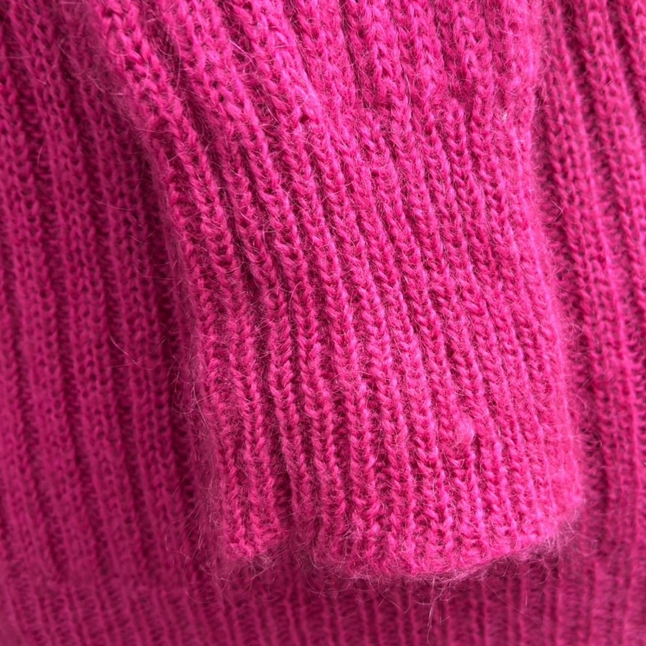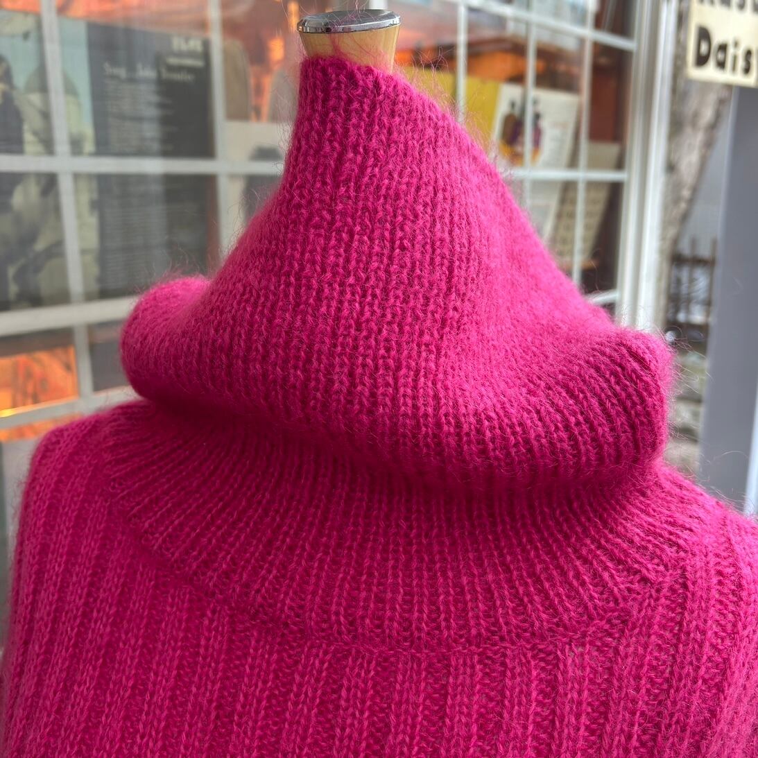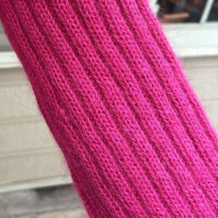 鮮やかなマゼンタと柔らかなピンクが混ざり合ったマゼンタピンクのカラーやボリュームのあるタートルネックのフォルム、毛足の長いモヘアミックスがとっても可愛い1着です。