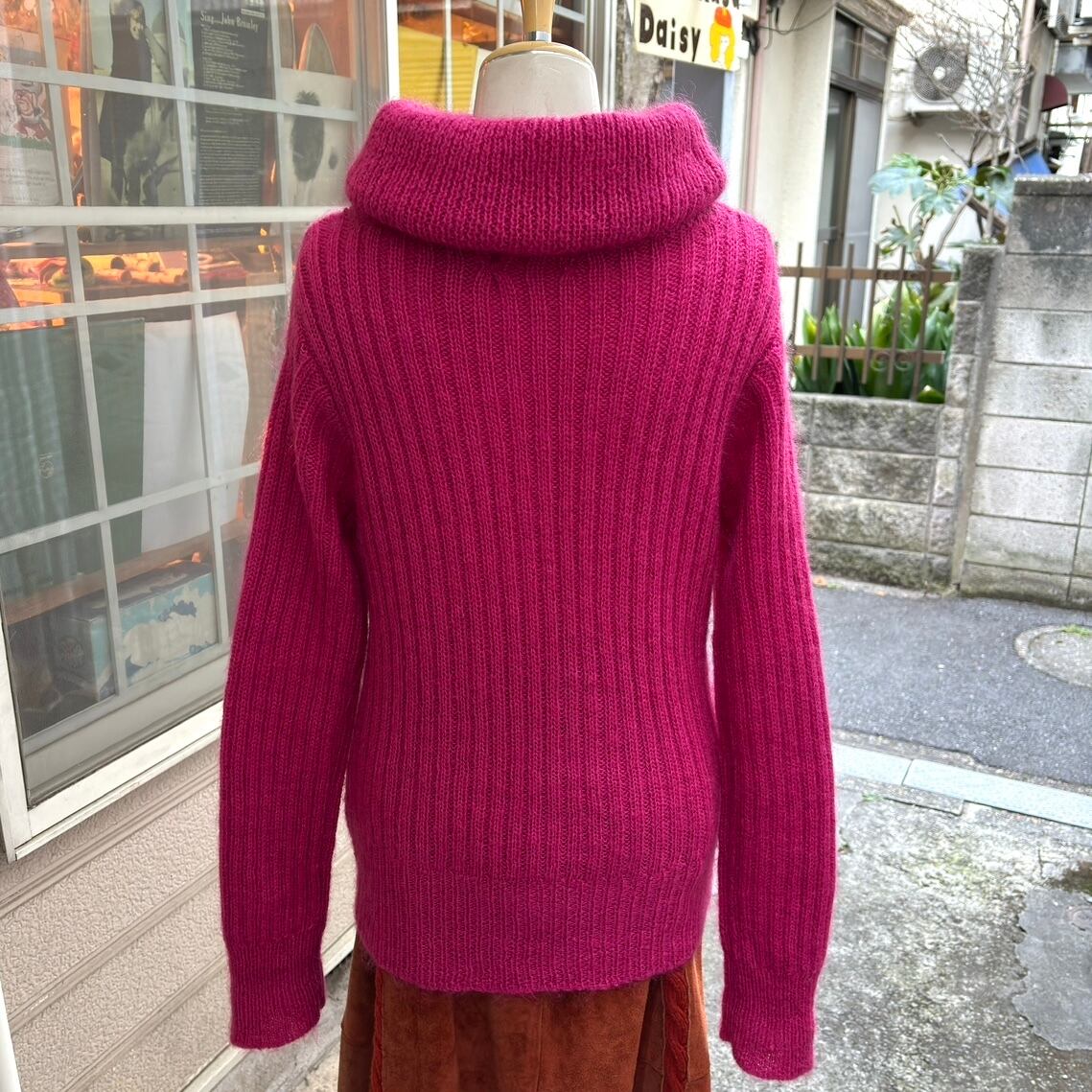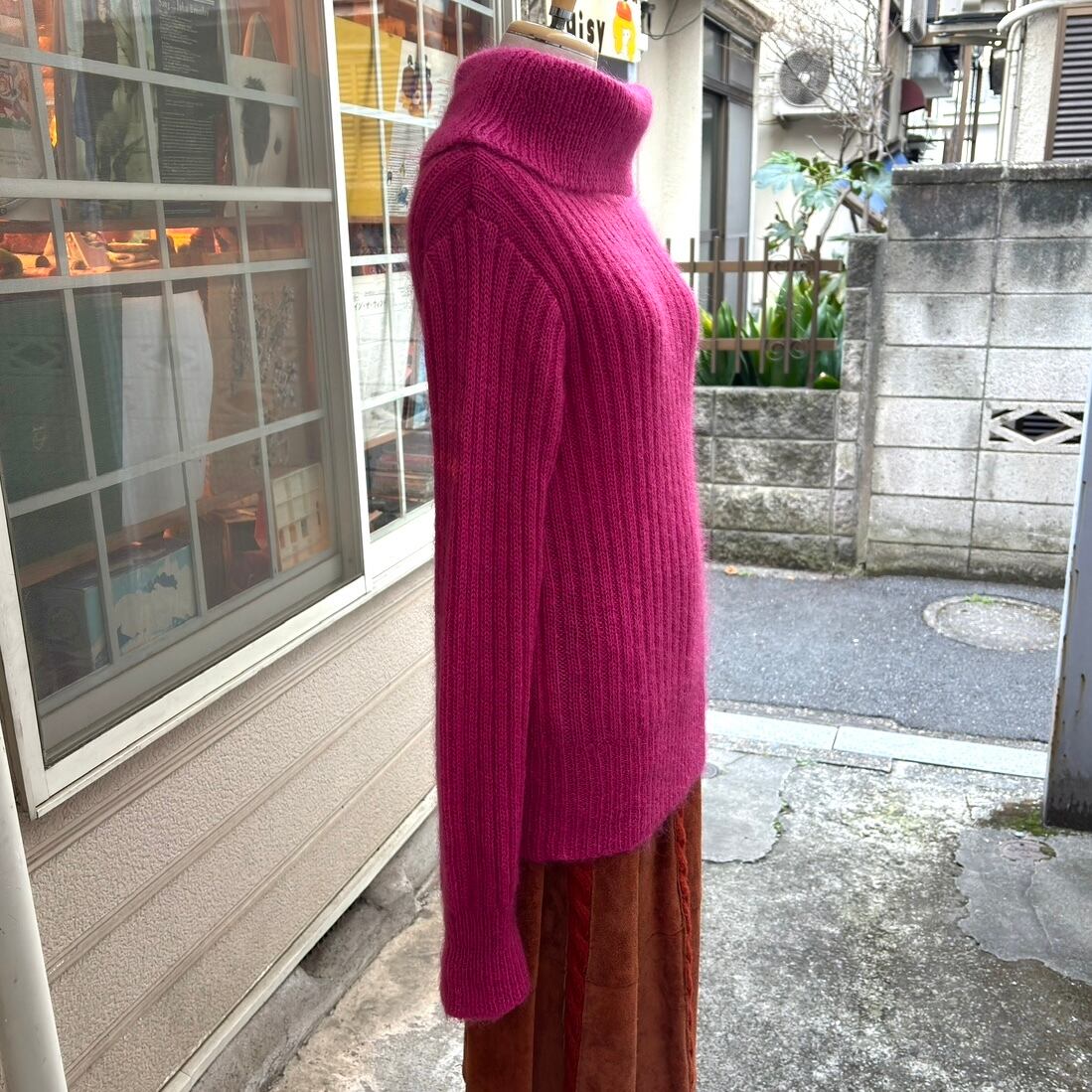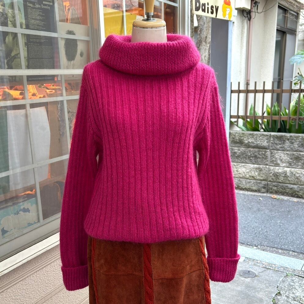 80年代から90年代 ヴィンテージ マゼンタピンク モヘアミックス タートルネック ニットです。
