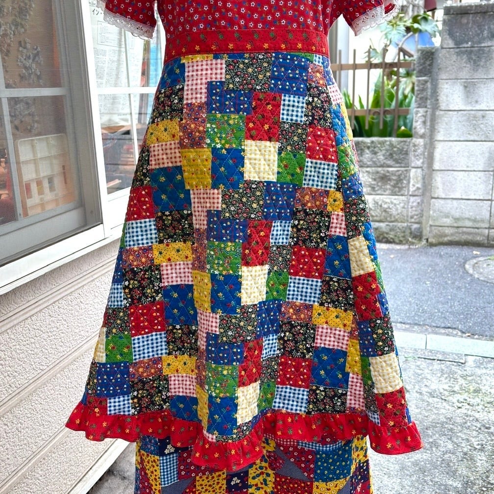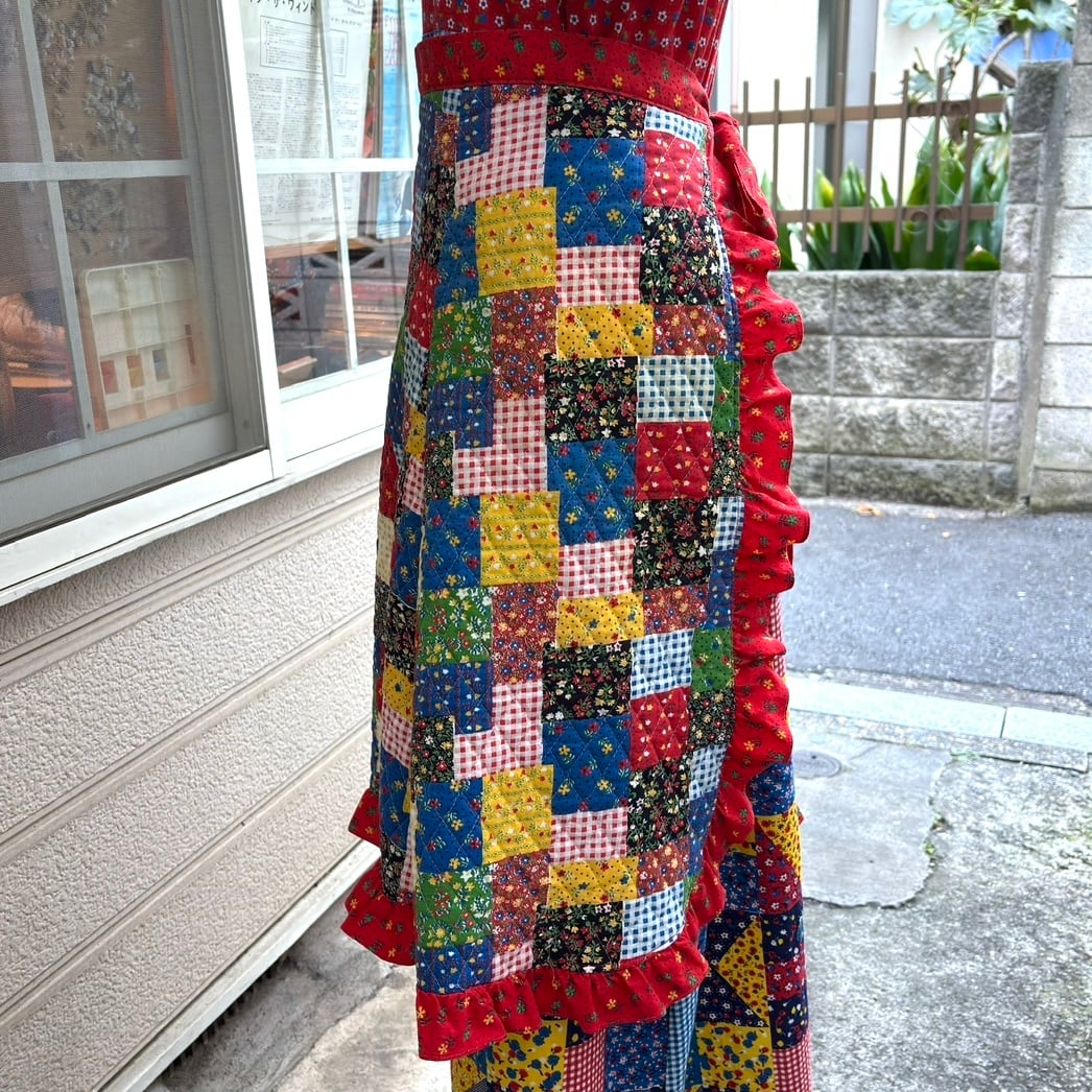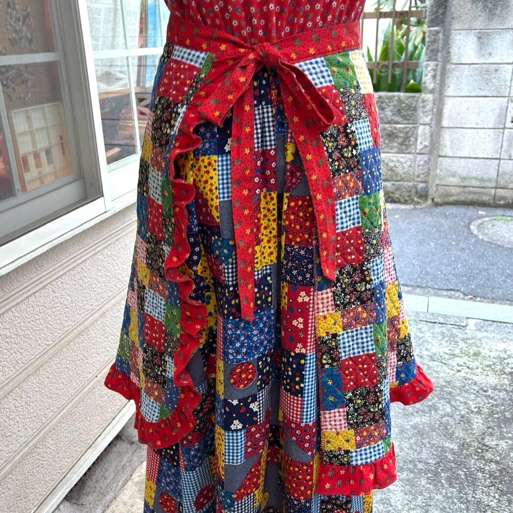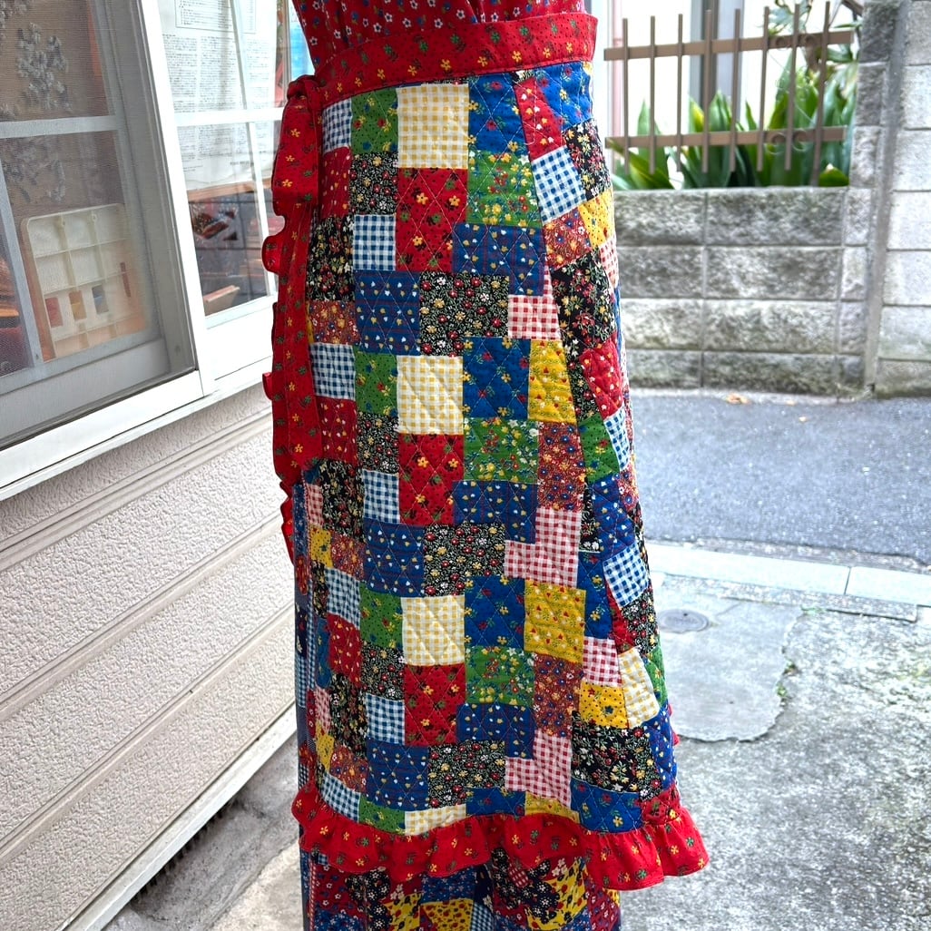 70'S USA Vintage patchwork pattern quilting apron。