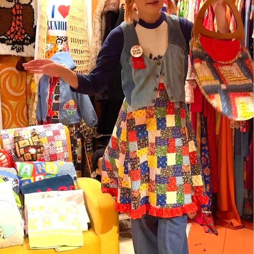 ギンガムチェックやフラワー模様のカラフルなパッチワークプリントがとっても可愛いアイテムです。
