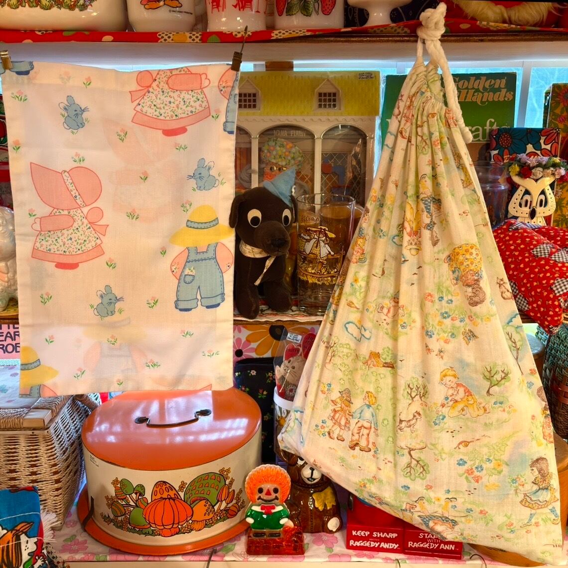 70年代 ヴィンテージ 当時のハンドメイド1点もの ホリーホビー柄 コットン生地のアイテムです。