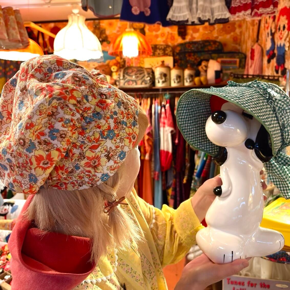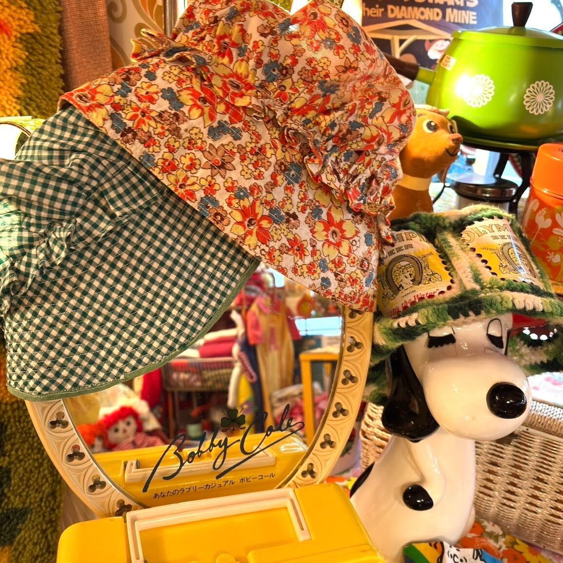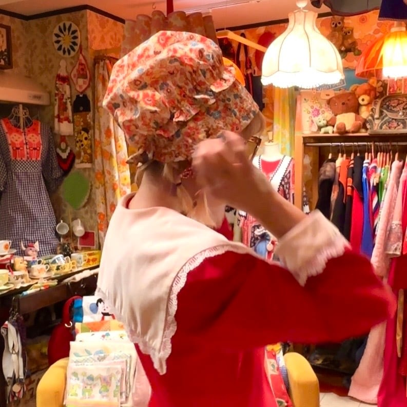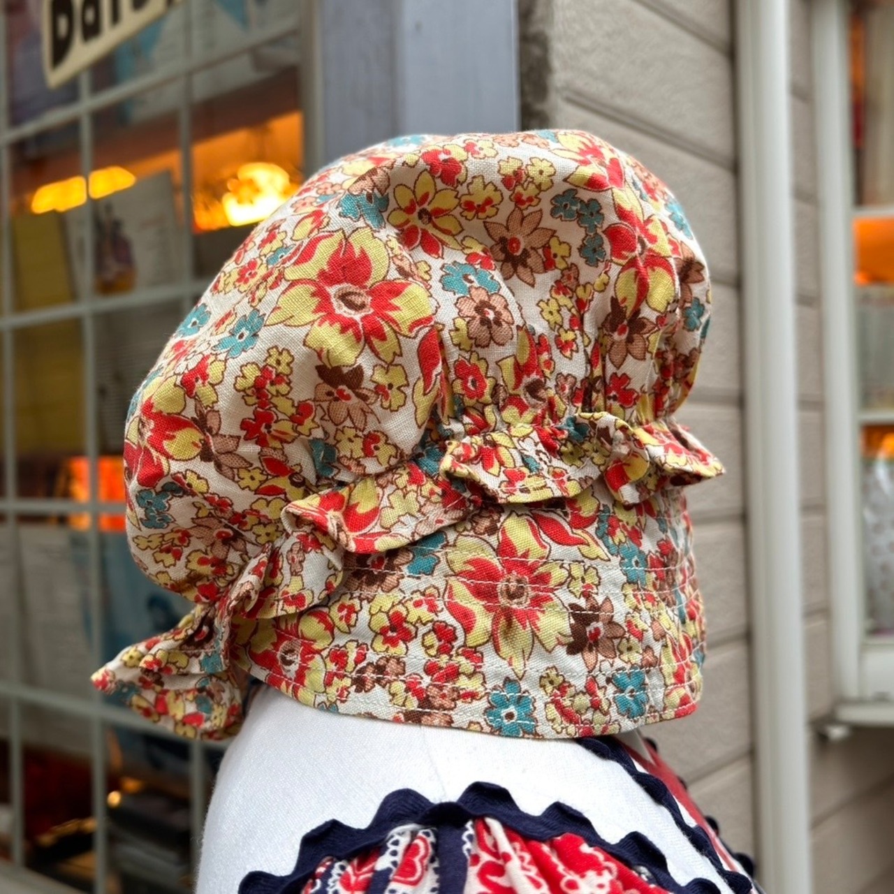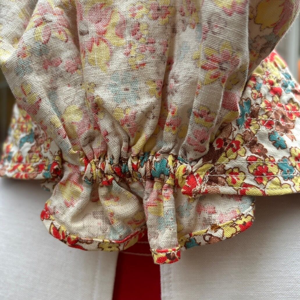 70年代 ヴィンテージ 当時のハンドメイド1点もの フラワー柄 ボンネットハットです。