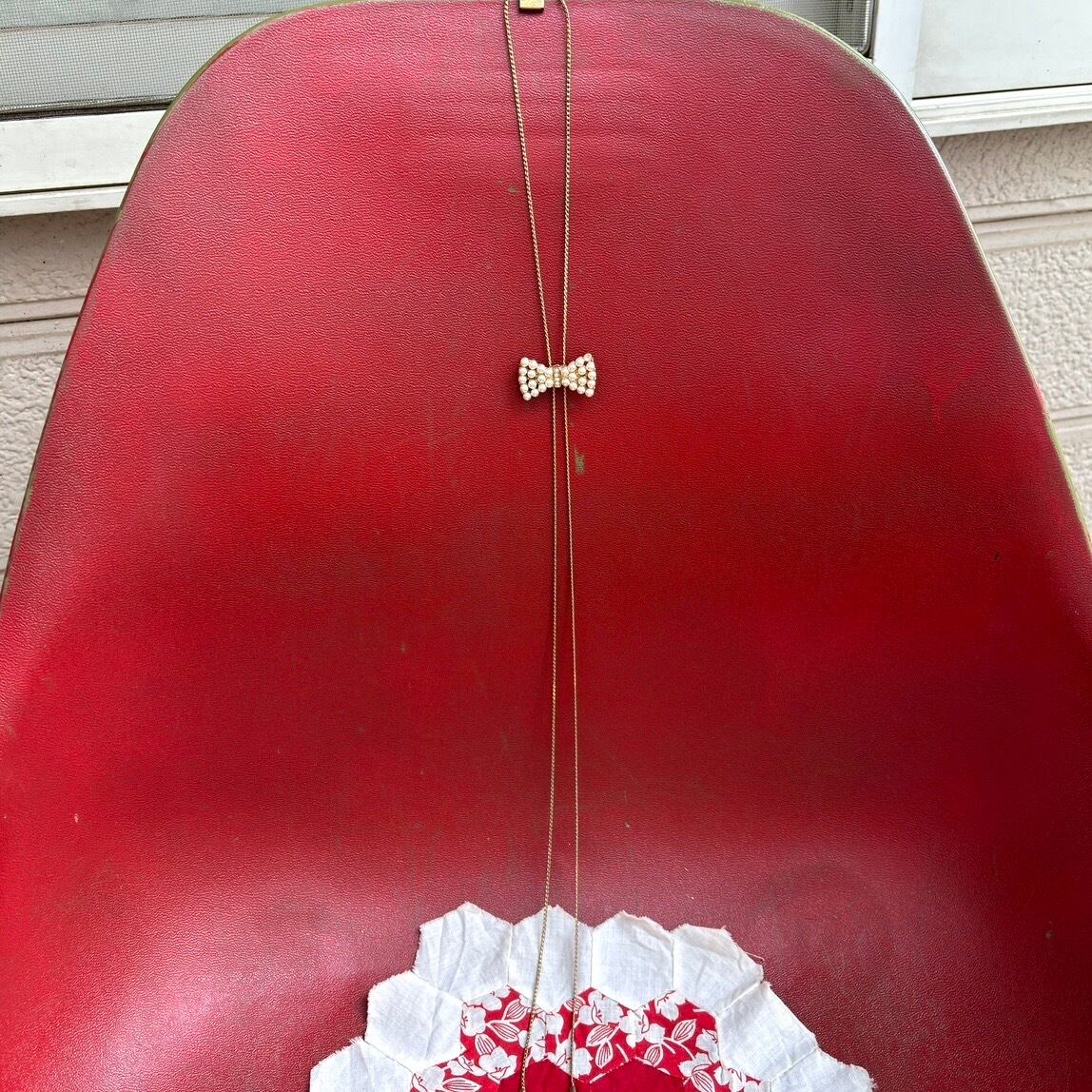 ヴィンテージ パールビーズリボン ループタイ ネックレスです。