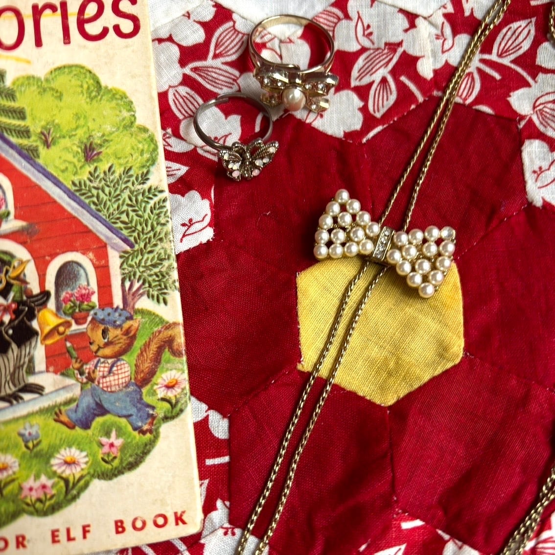 リボンの右上のパールビーズに半円の欠けがありますが、土台にパールビーズが半円残っている為、ほぼ目立つことは無いかと思います。
