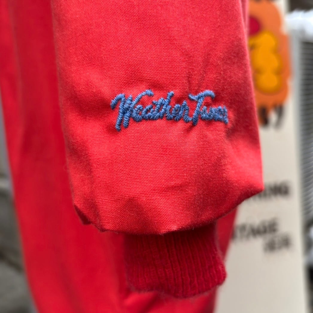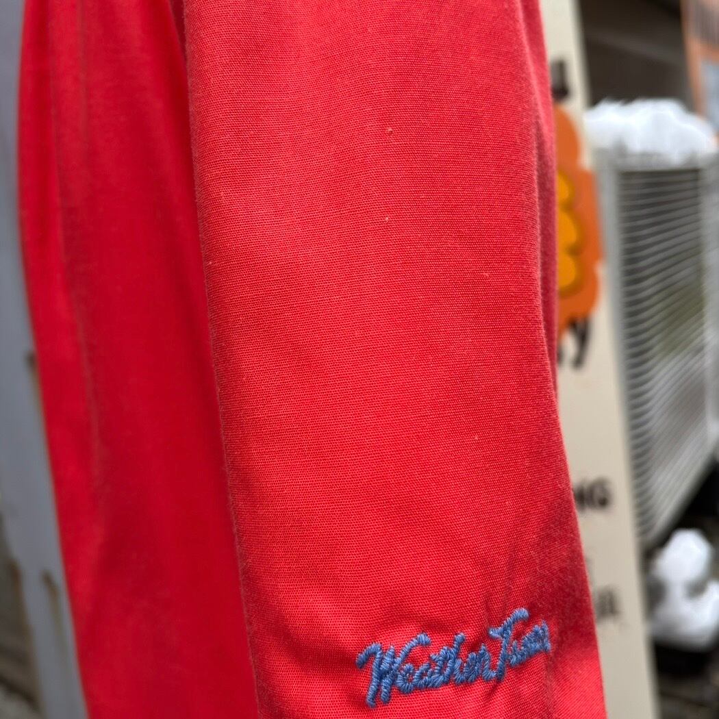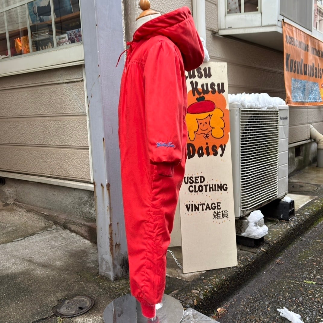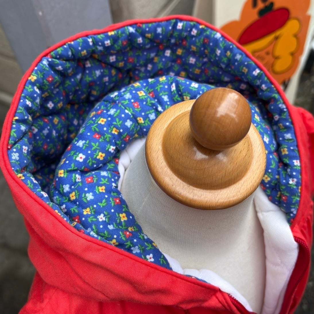 朱色のボディーにポップなハートフラワーパッチやオールインワンのデザインがとっても可愛い1着です。