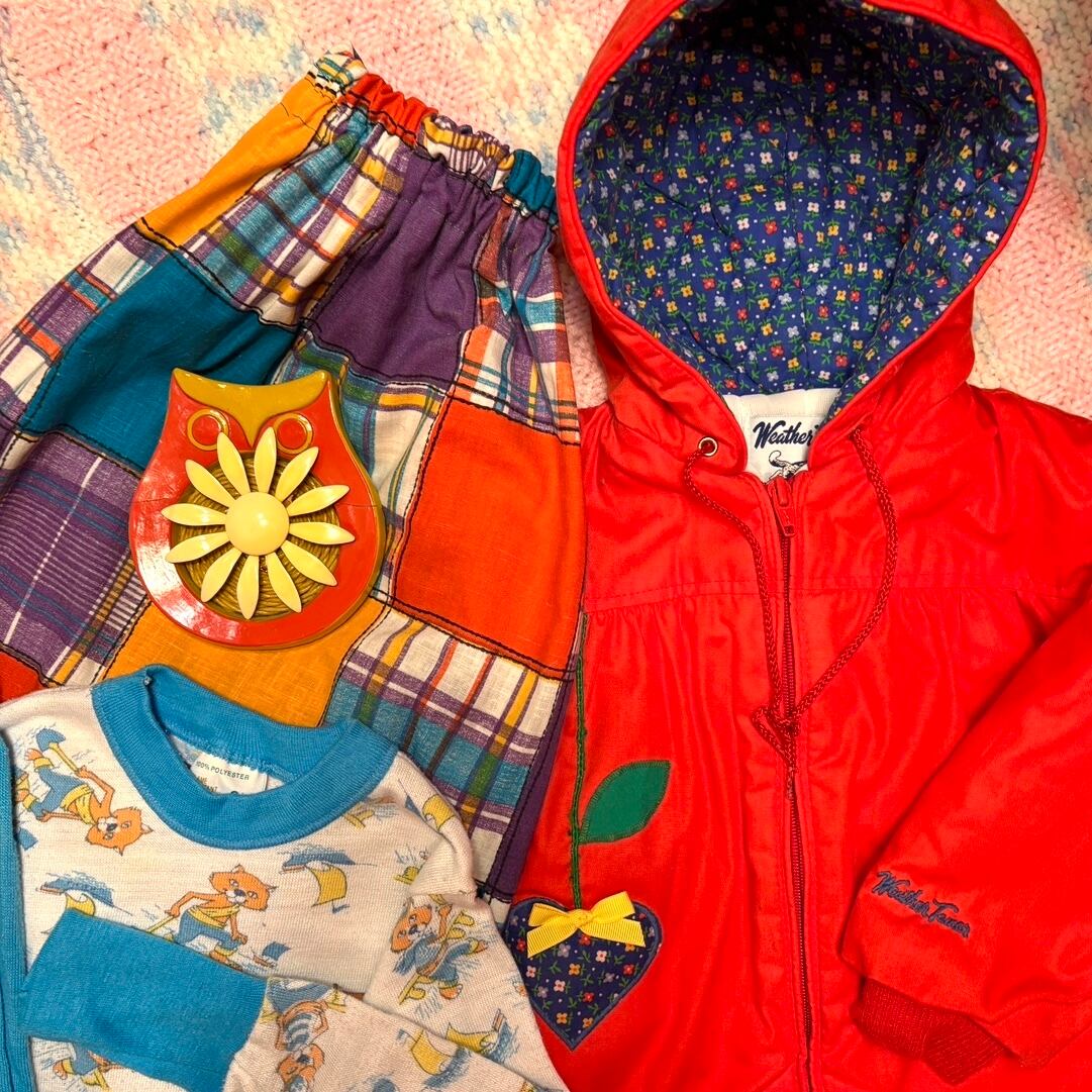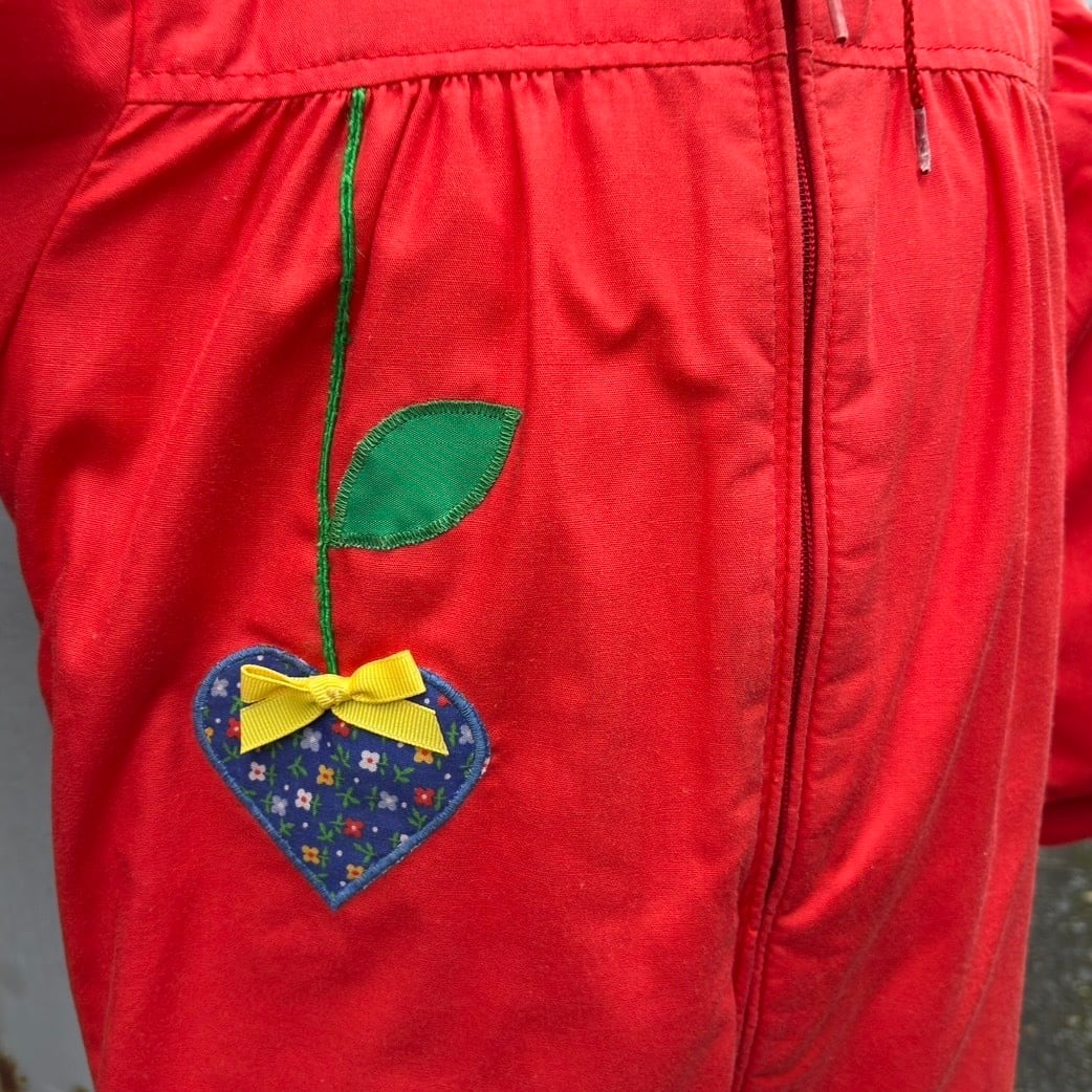 70'S〜80'S USA Vintage kid's heart flower patchwork quilting all in one。