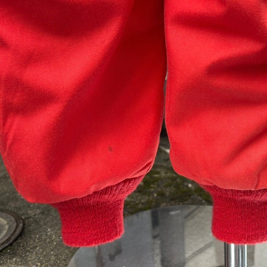 経年による僅かな色むら、リブに若干の毛羽立ち、フロント中央のウエスト上、左足のヒップあたりと裾上にシミ、内側のキルティングに若干の擦れの箇所がありますが、着用に支障は無いかと思います。