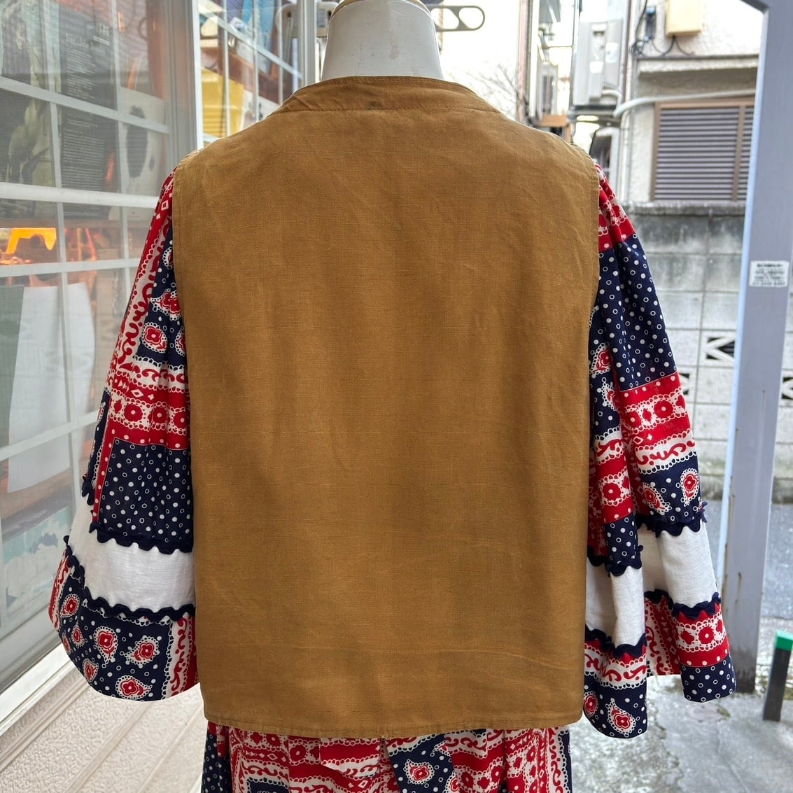 70年代のワンピースに合わせたミックススタイルやヴィンテージアイテムと合わせたカジュアルなスタイリングなどいろいろなコーデのポイントに着回しの効く1着かと思います。