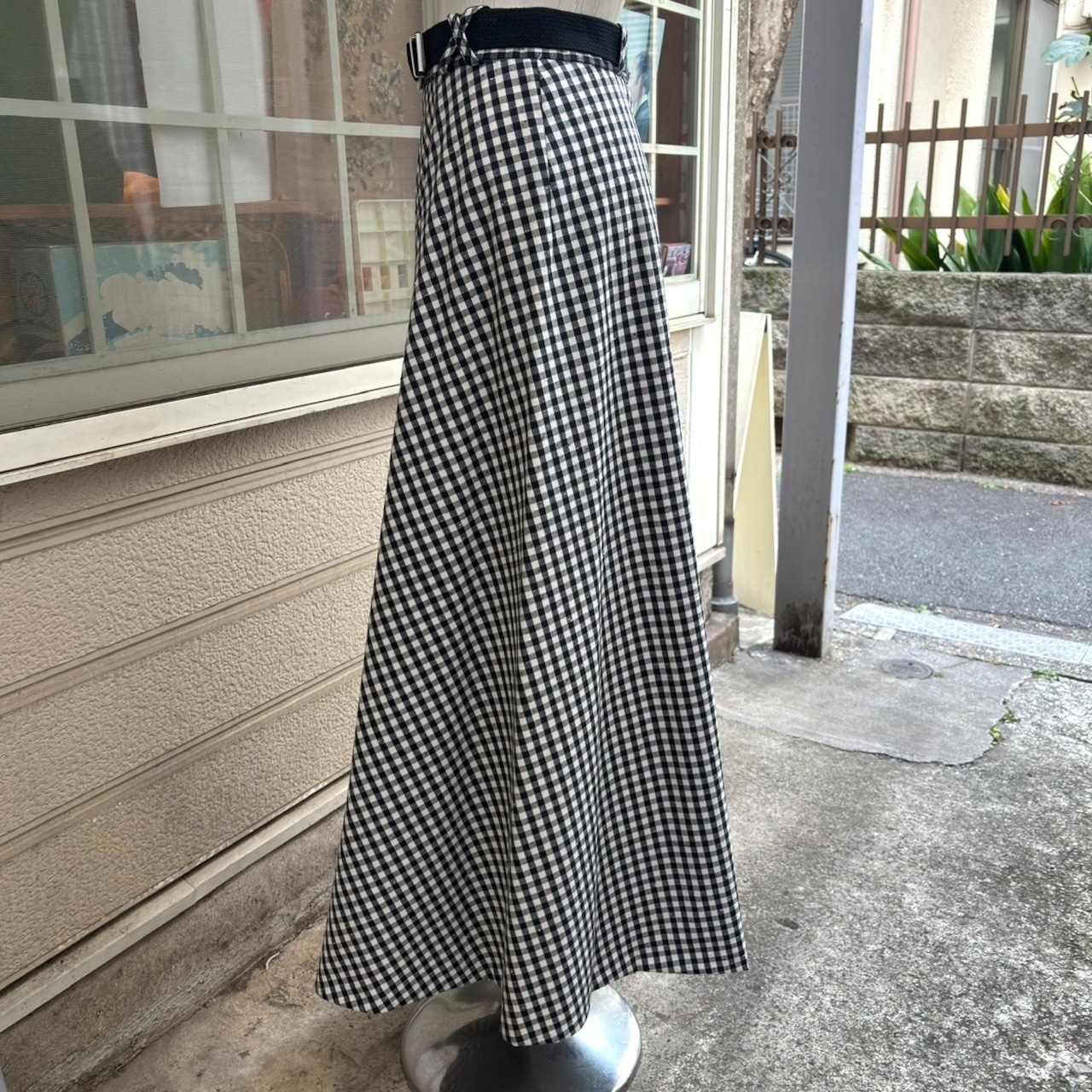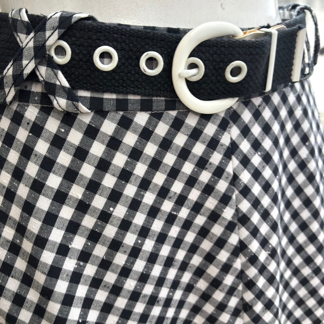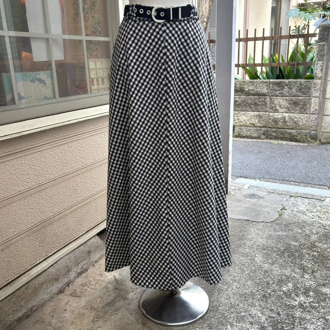 70'S USA JH Collectibles Vintage wh/bk checkered long flared skirt with belt。