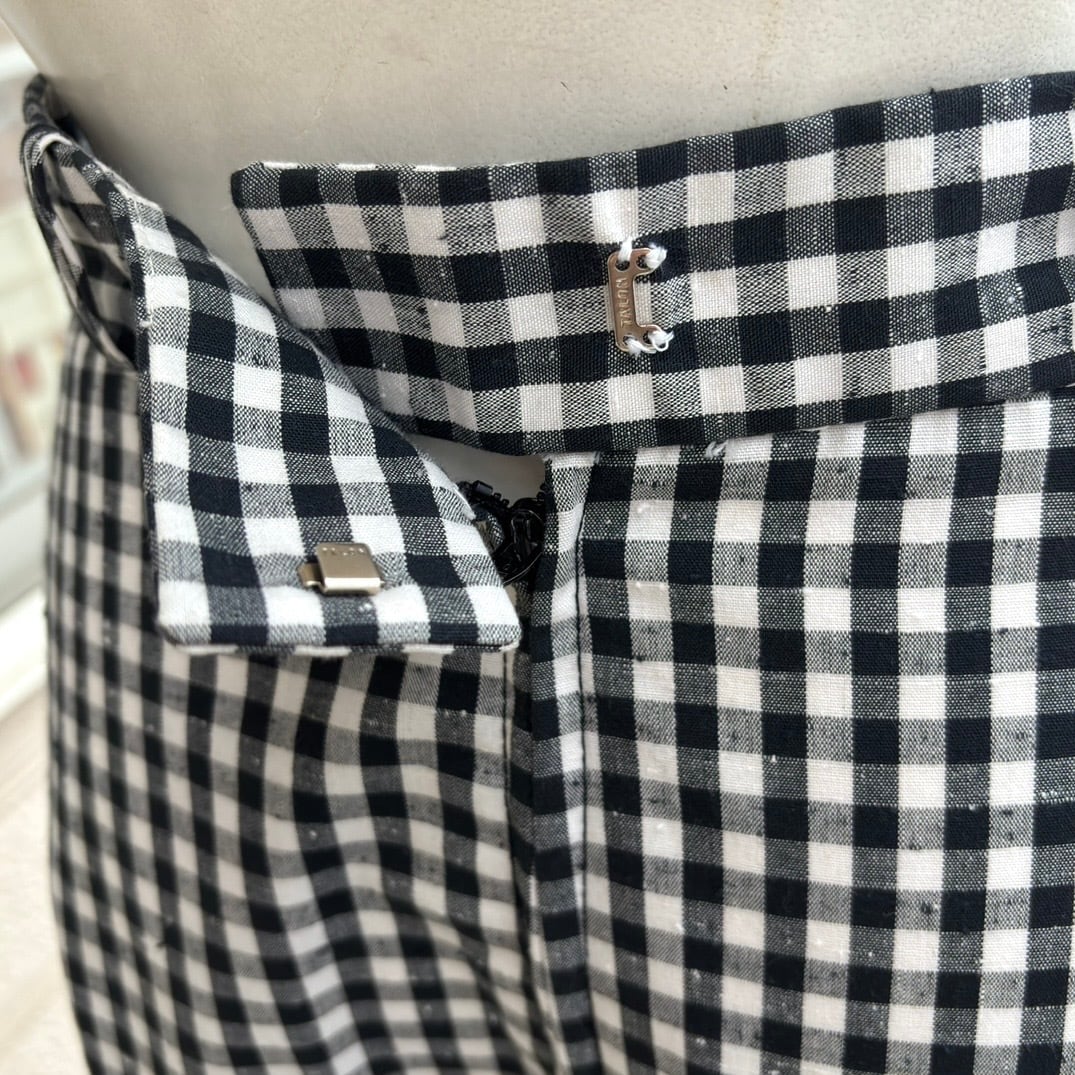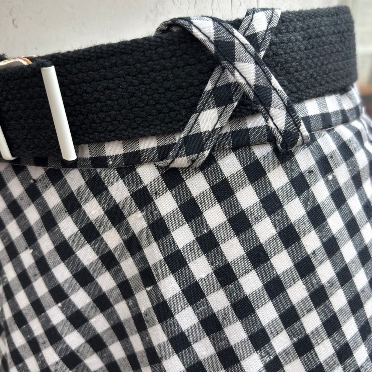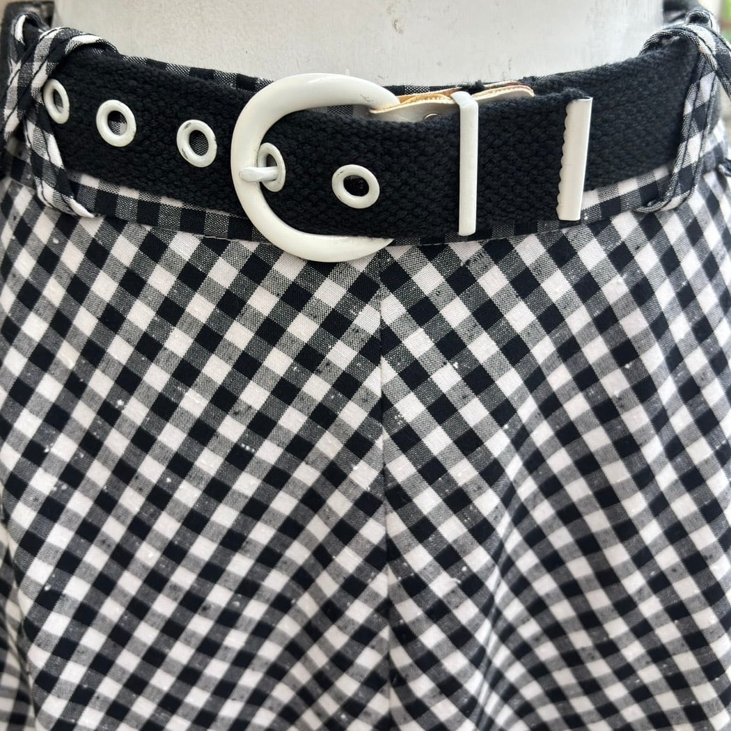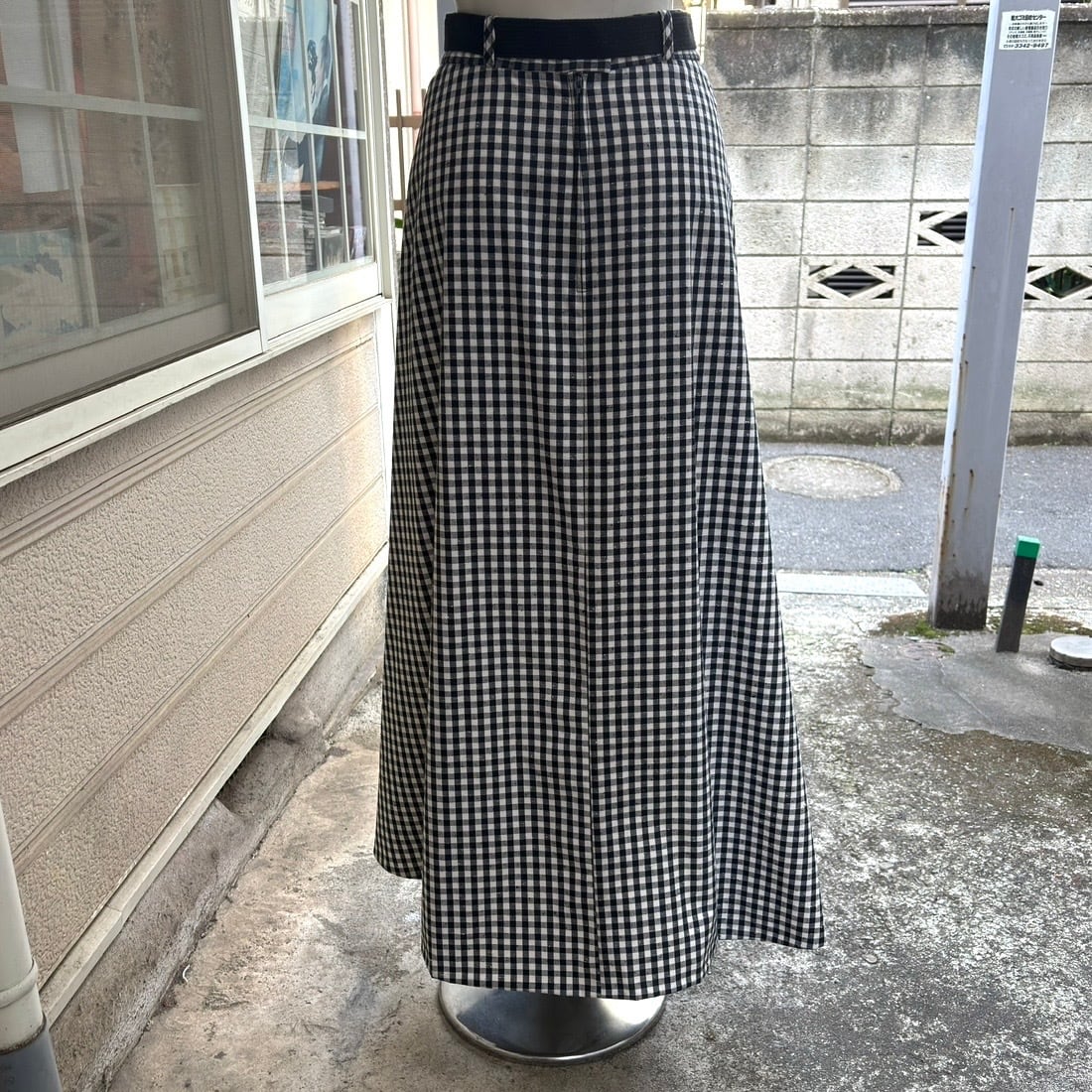70'S USA JH Collectibles Vintage wh/bk checkered long flared skirt with belt。