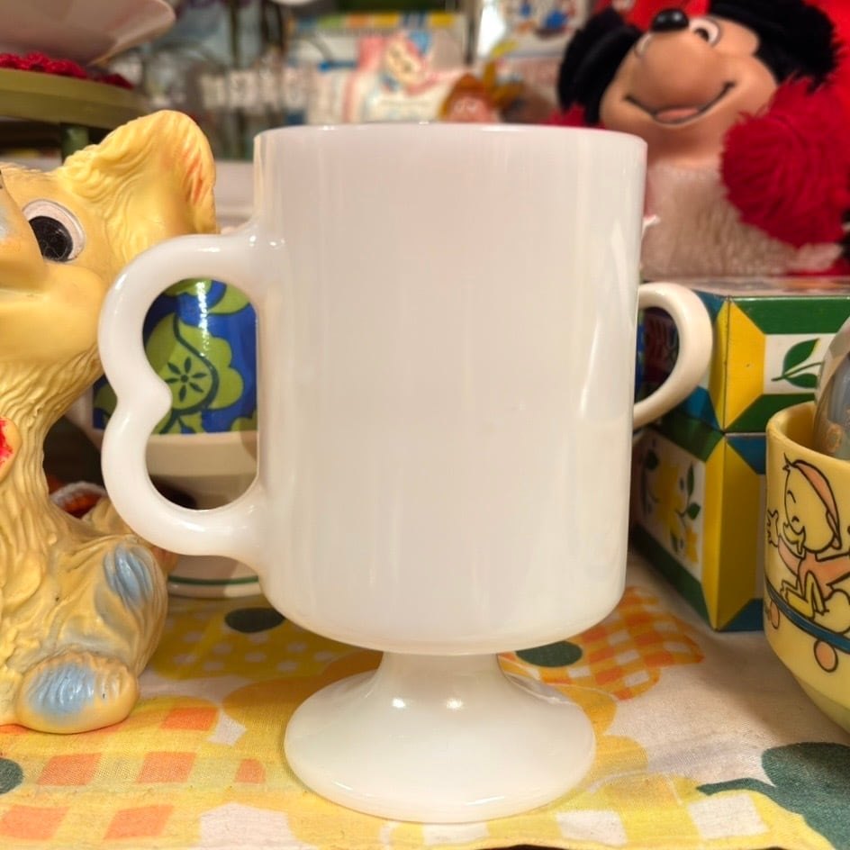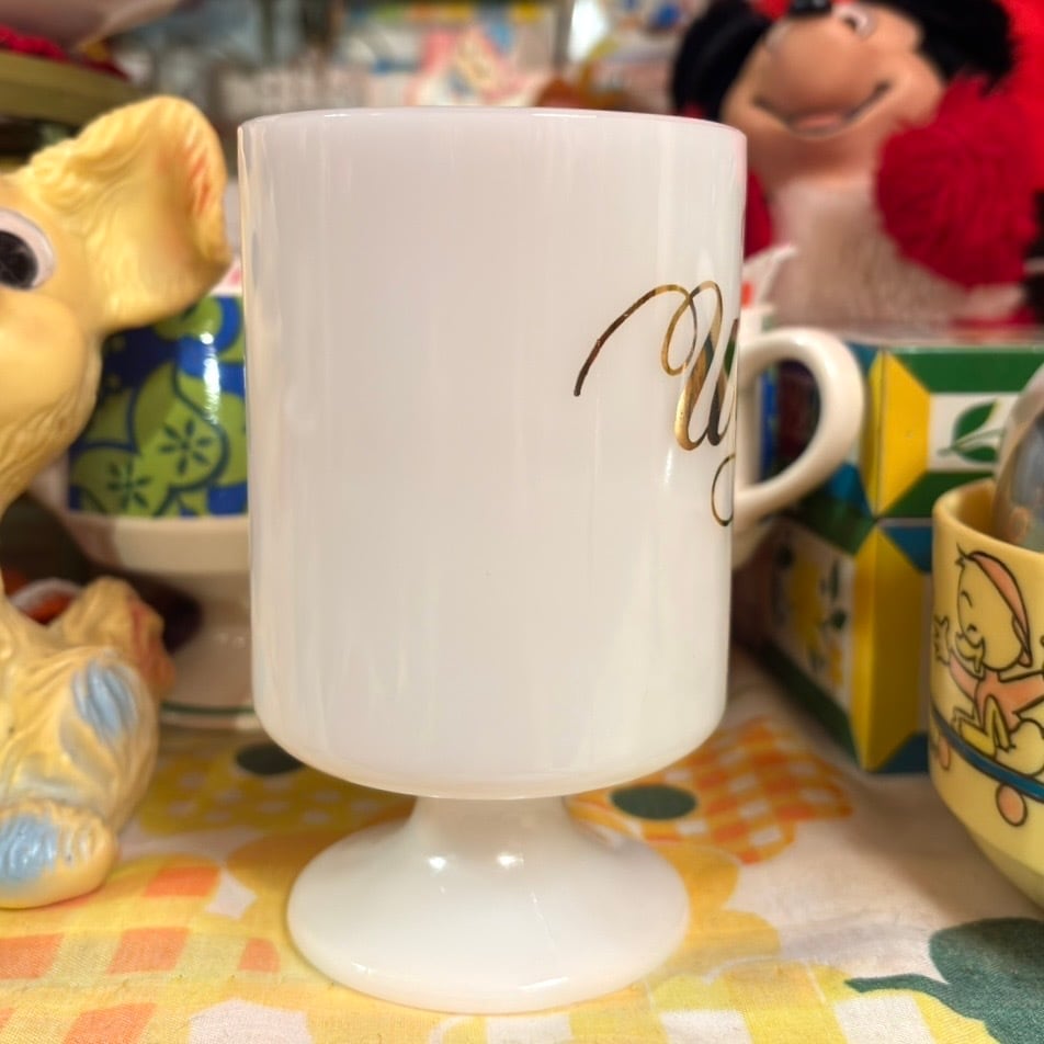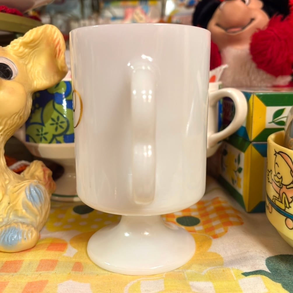 70'S USA Vintage advertising milk glass footed mug。