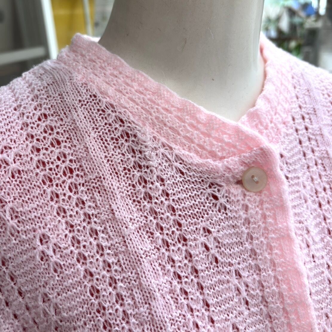 60年代 ヴィンテージ ライトなベビーピンクや編み目のデザインがとっても可愛い1着です。