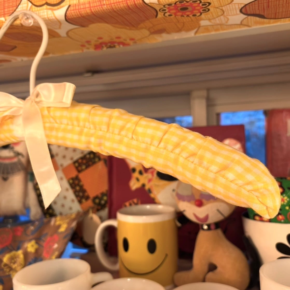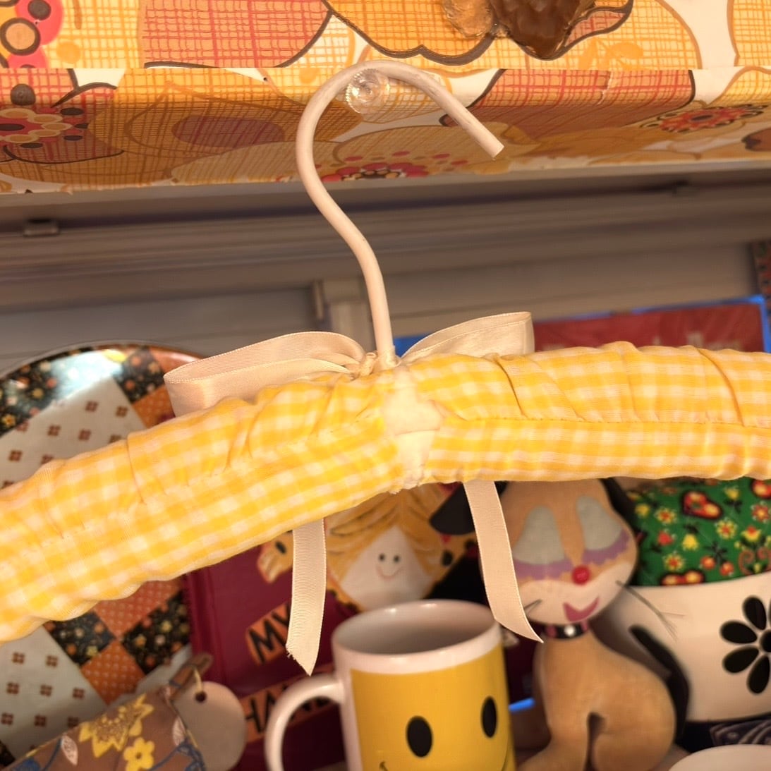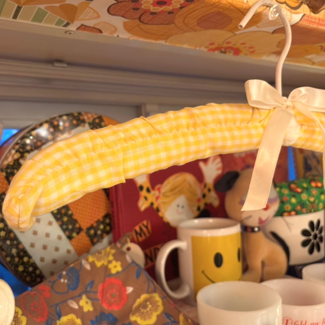 70年代 当時のハンドメイド1点もの イエロー ギンガムチェックカバー ハンガーです。