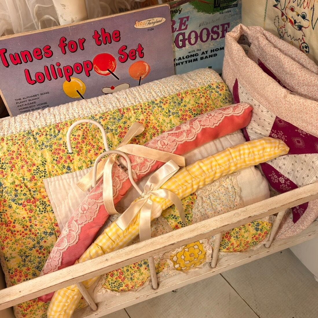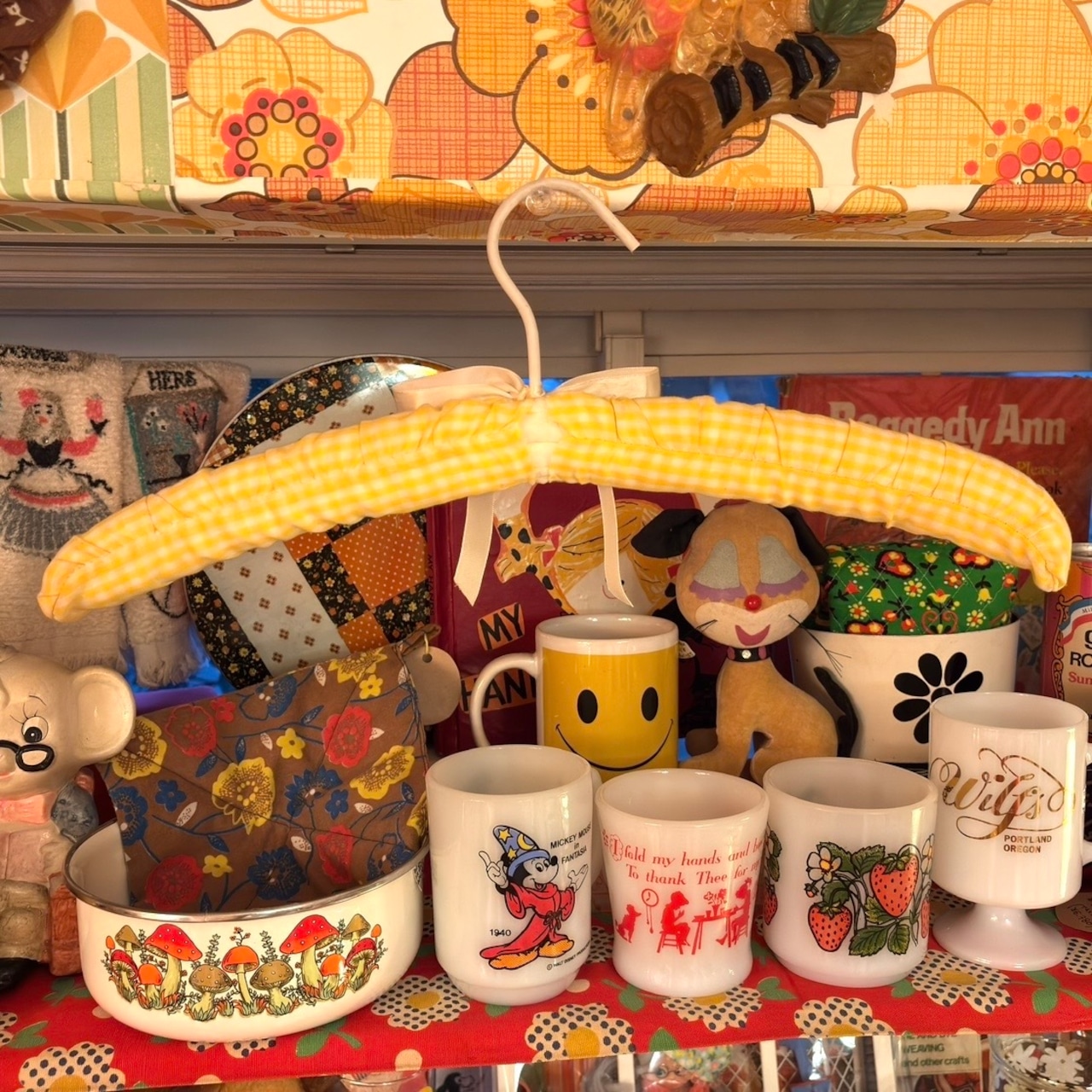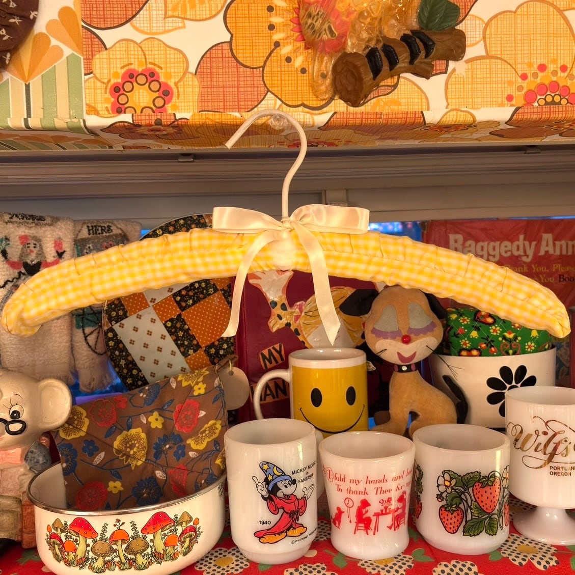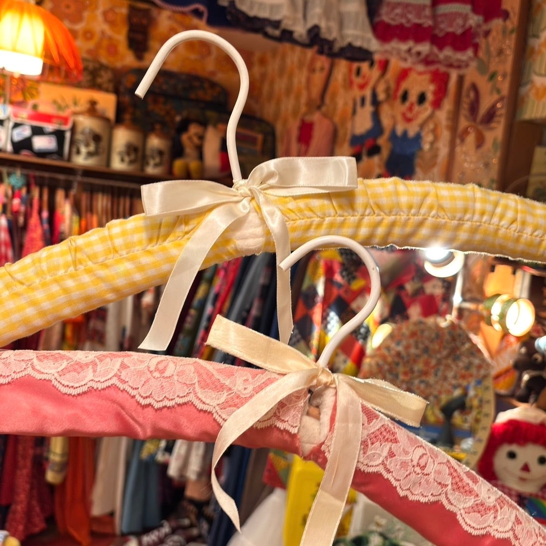 70年代 当時のハンドメイド1点もの イエロー ギンガムチェックカバー ハンガーです。