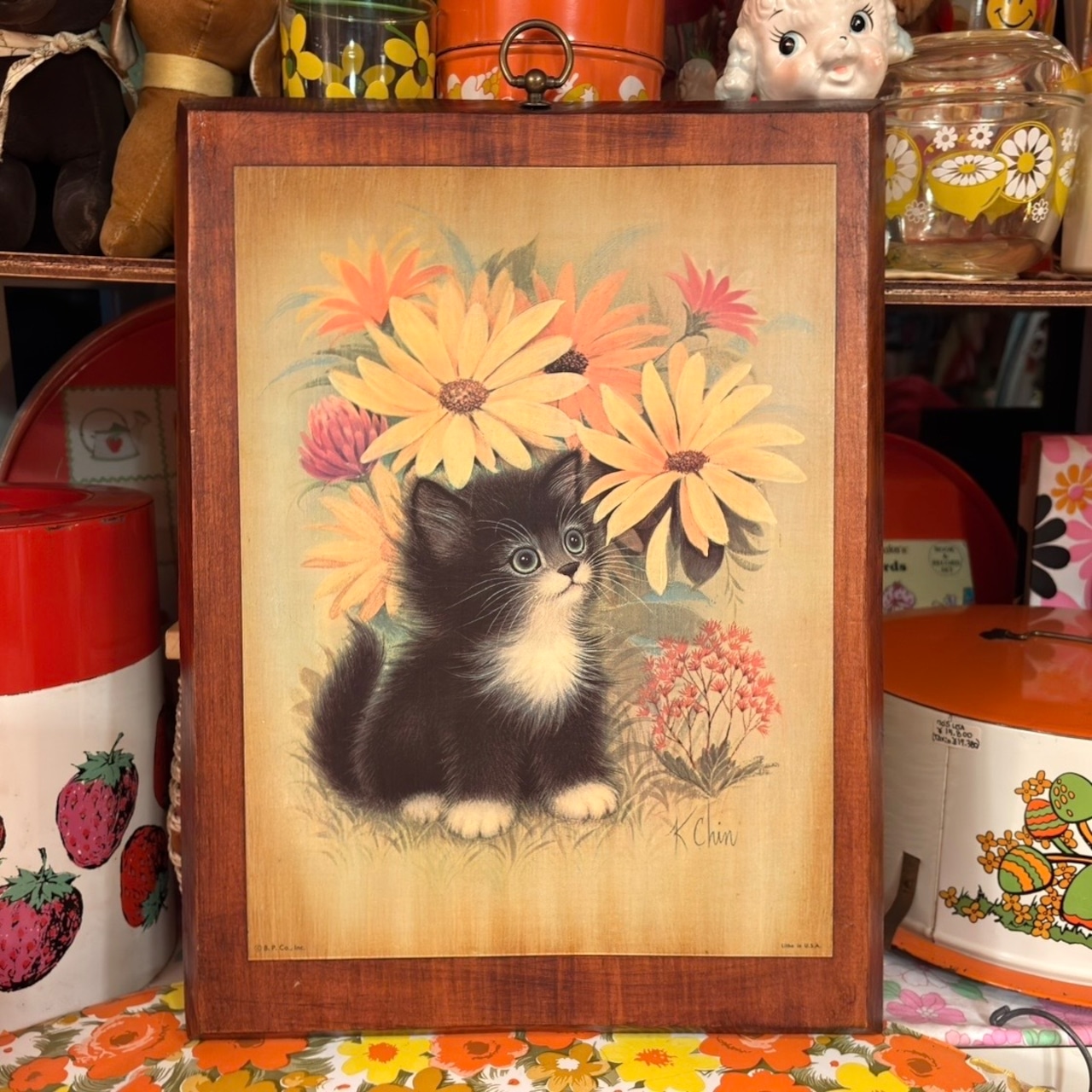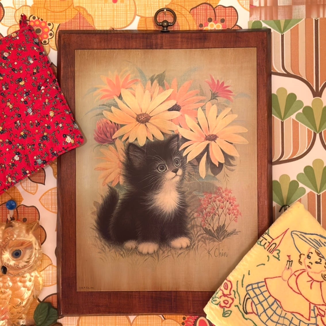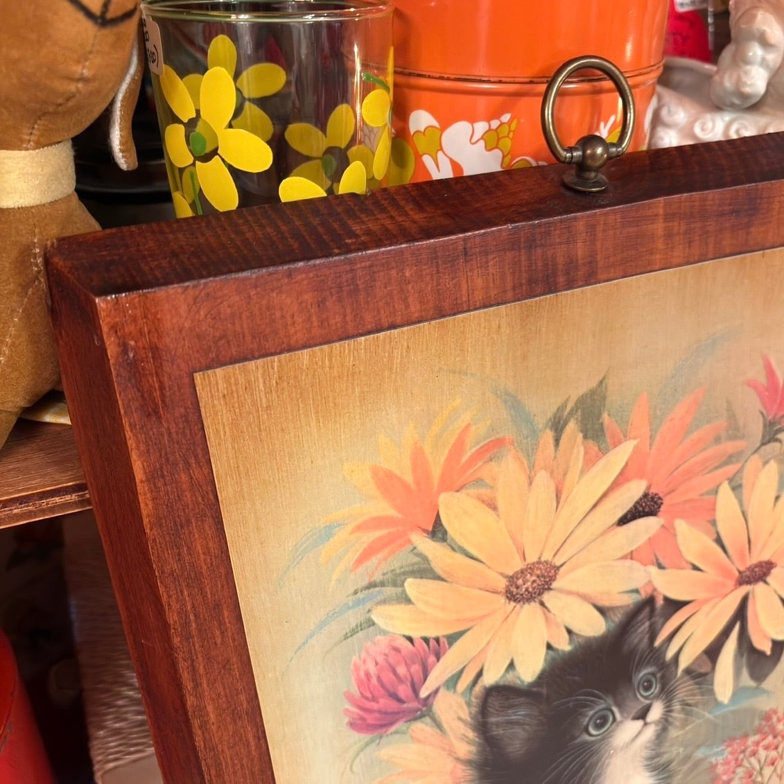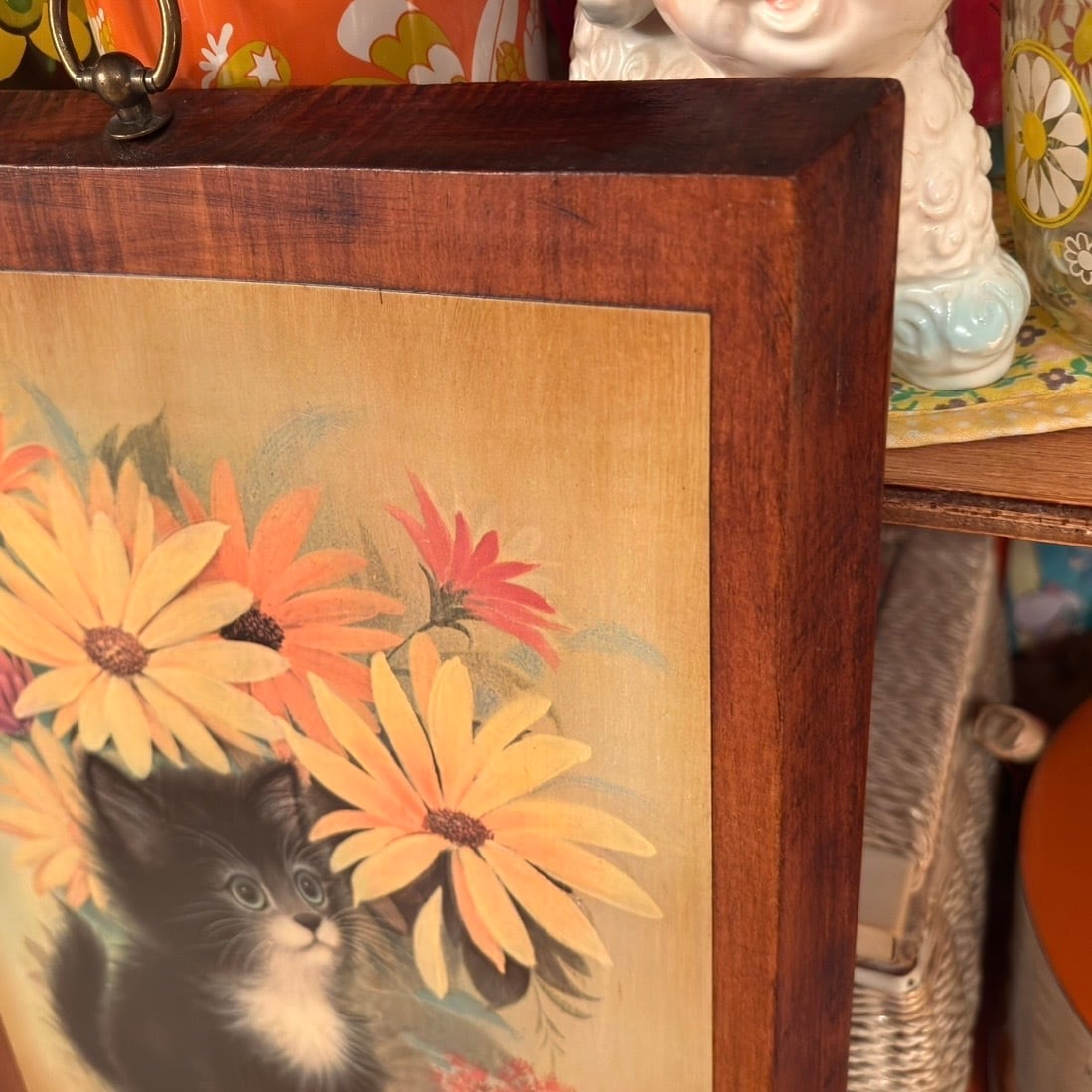 60年代 ヴィンテージ 子猫とフラワー 壁掛けです。