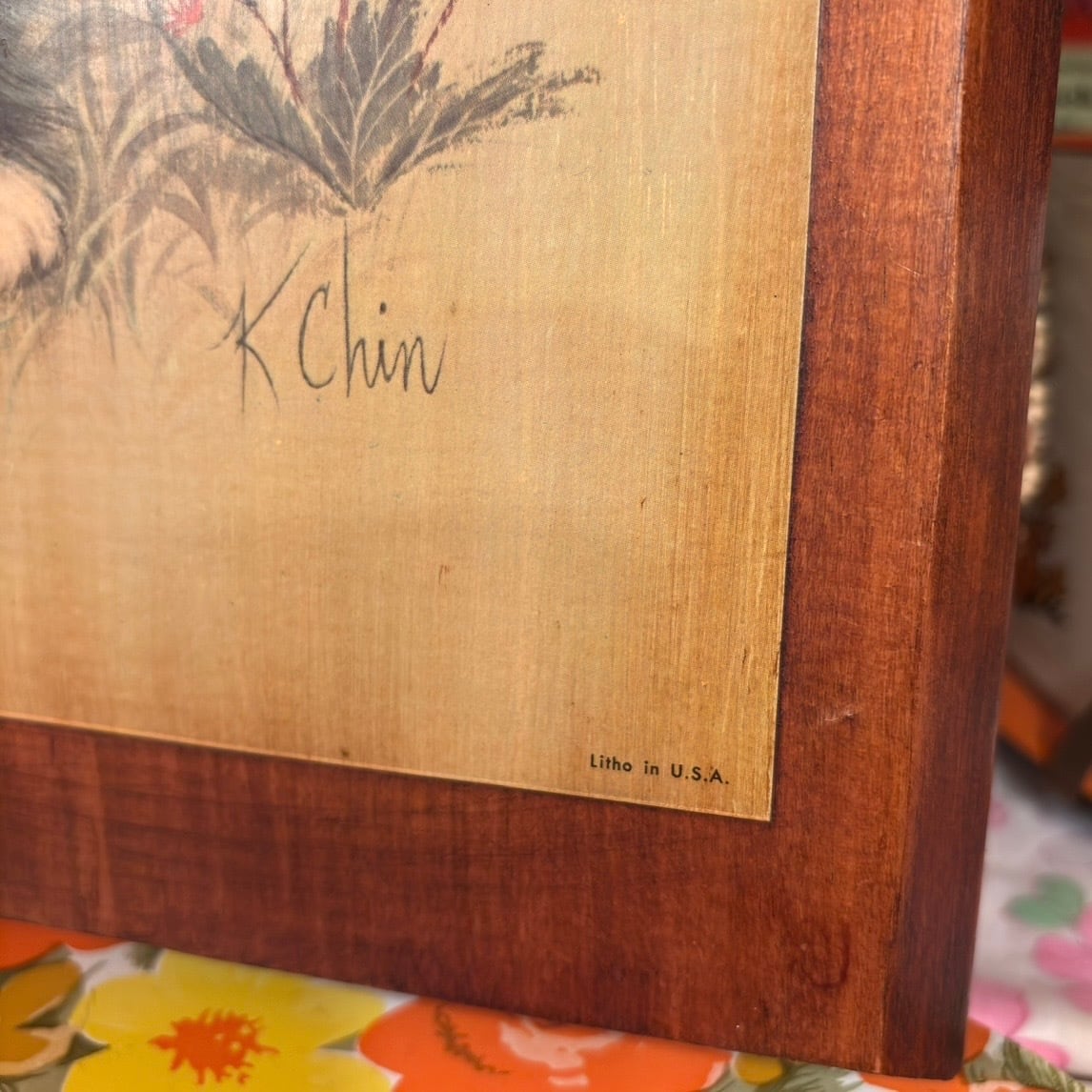 60'S USA Vintage kitten&flower wall hanging。