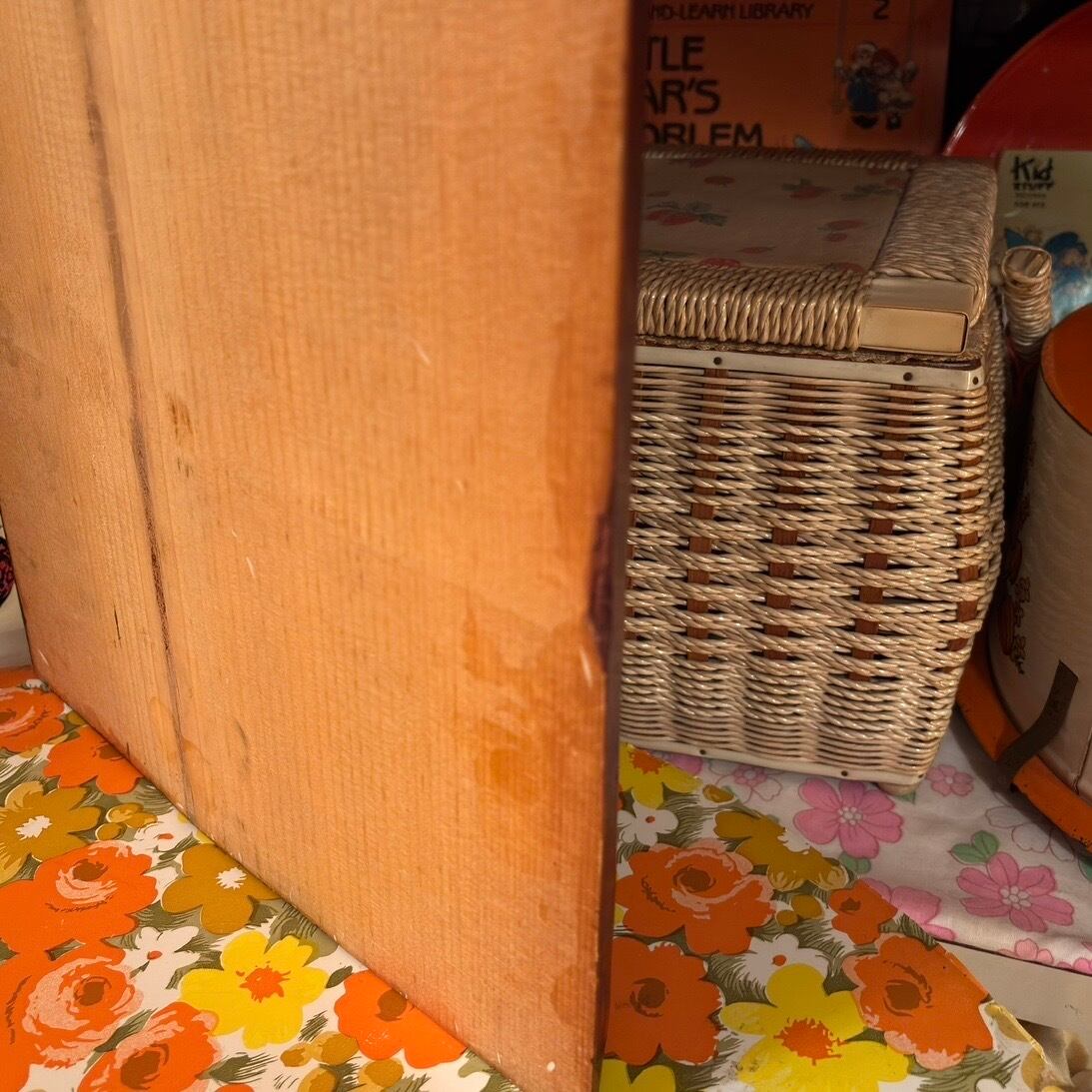 製造時からと思われる、ウッドフレームのペイントの色むら、裏側にペイントのシミ、枠に所々削れによるへこみ、僅かに木の曲がりが見られますがご使用に支障は無く、ヴィンテージのあじとして捉えて頂けたらと思います。