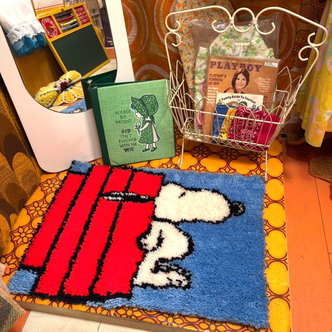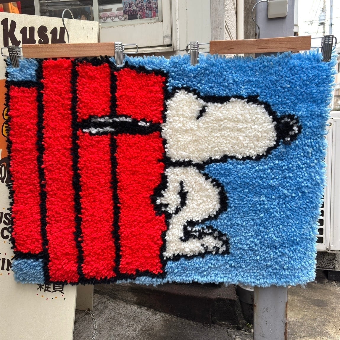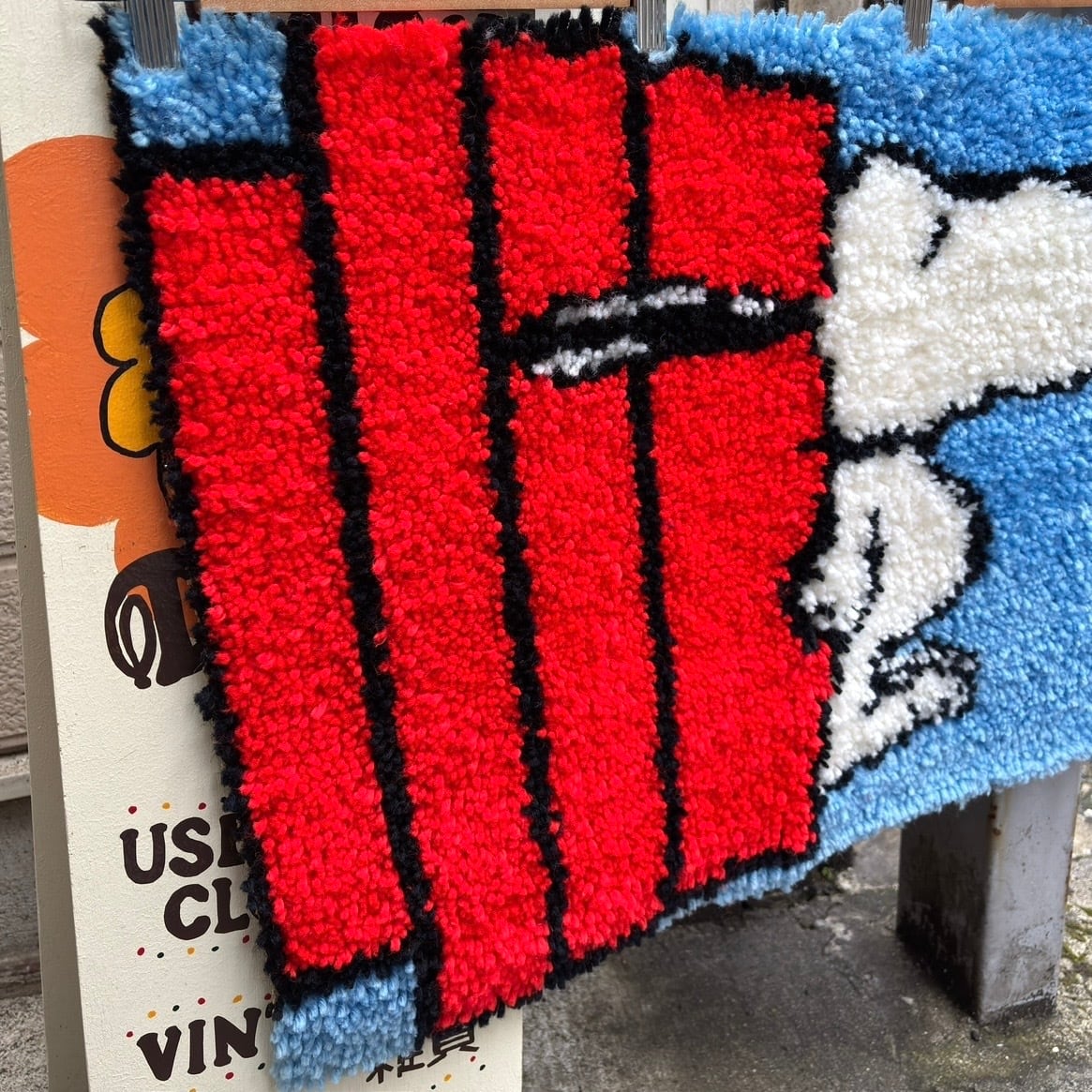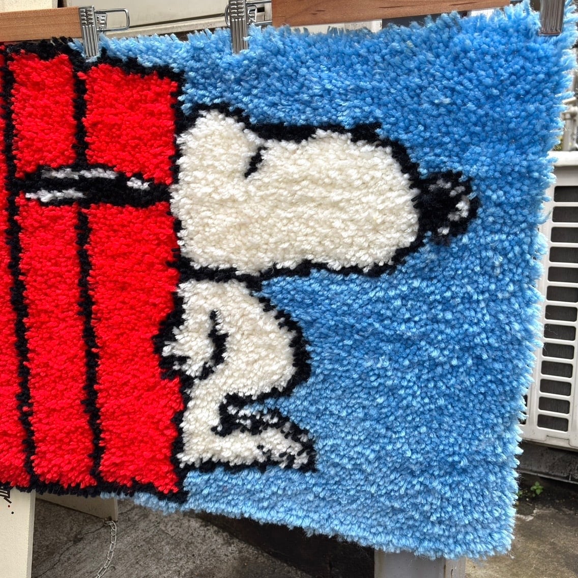 屋根の上で眠るスヌーピーのデザインや毛足の長いラグの作りが70年代ならではな、とっても可愛いアイテムです。