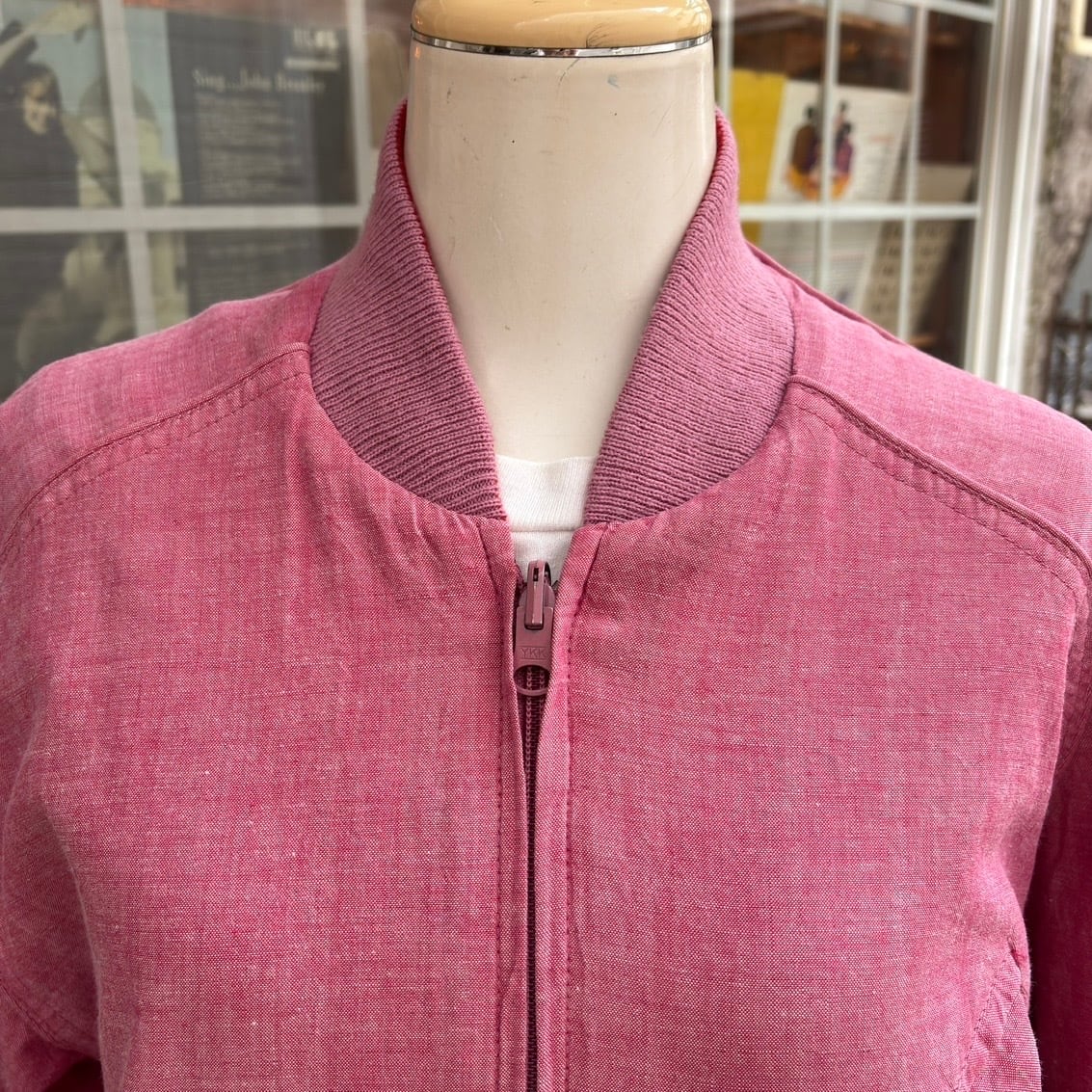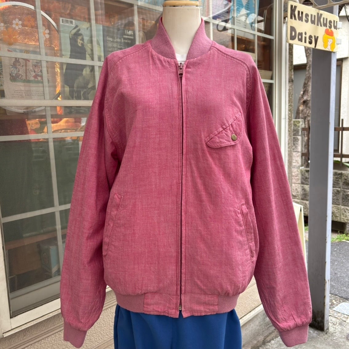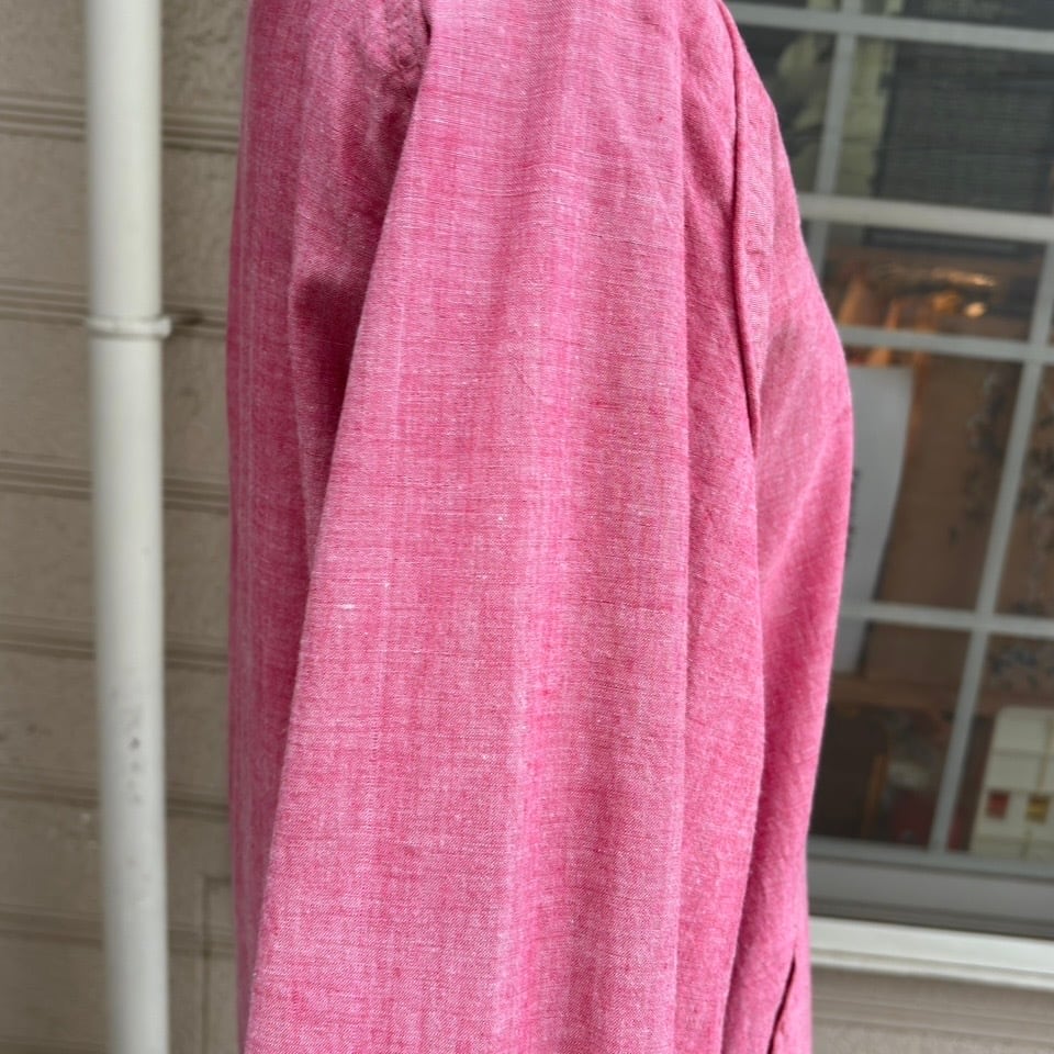 経年によるフロント右側の襟のリブの端に僅かな伸び、リブに僅かな毛羽立ち、フロント裾のマガジン柄のリブの中央寄りに僅かな擦れのリペア、シャンブレーの両袖に色褪せによる色むら、シャンブレーの生地に僅かなシワのくせが見られます。