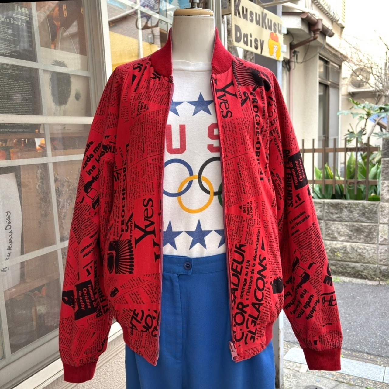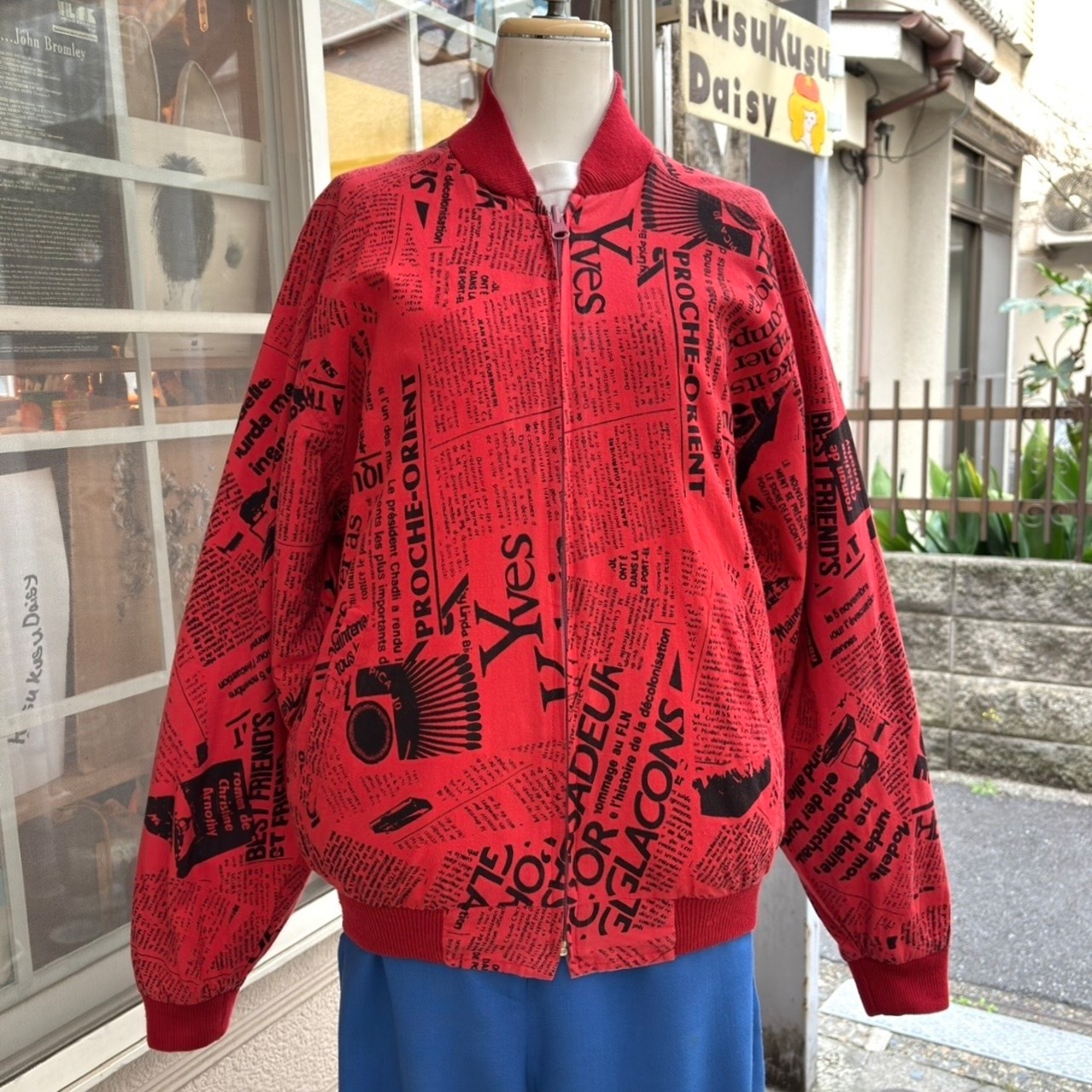 80'S USA Vintage magazine clippings printed reversible cotton jacket。