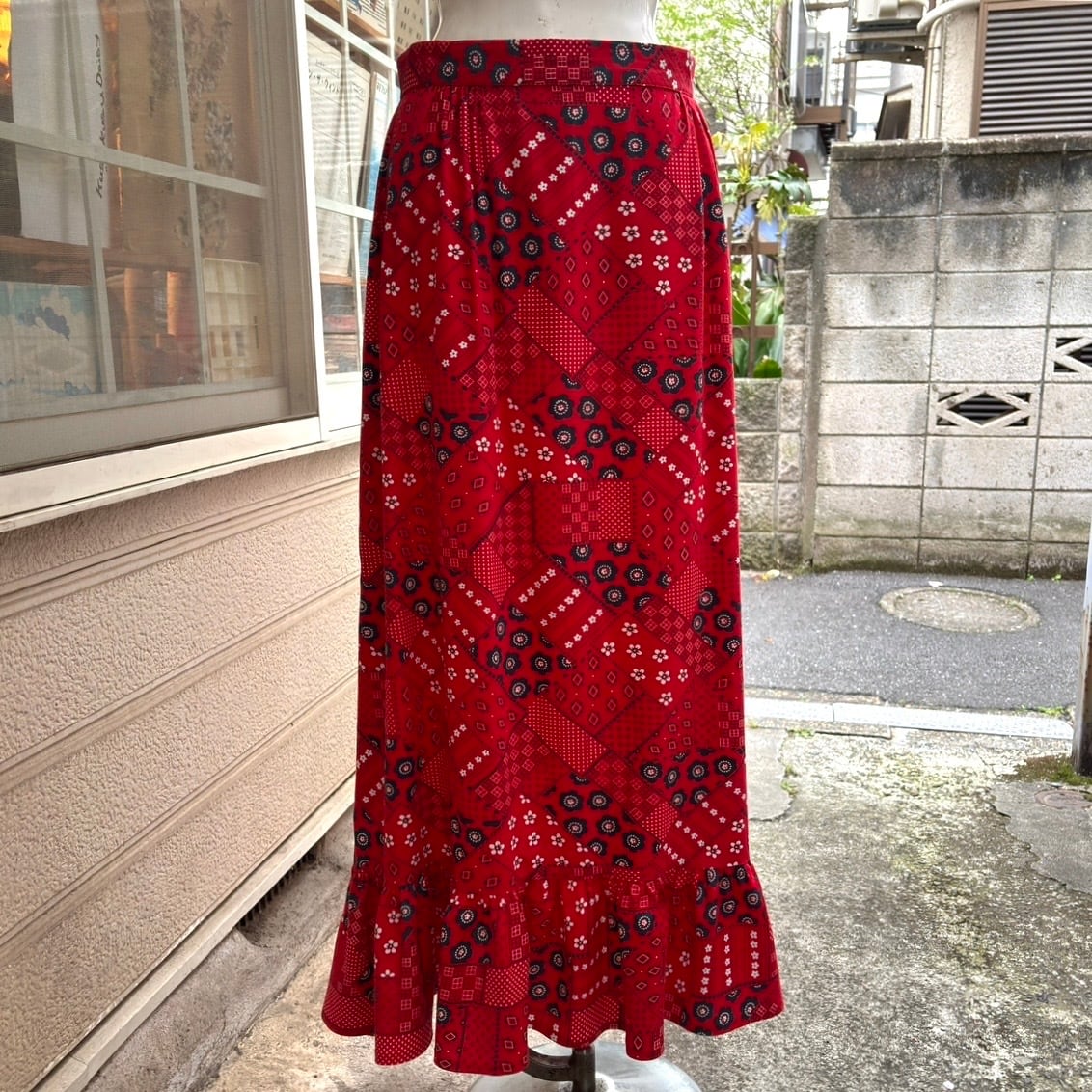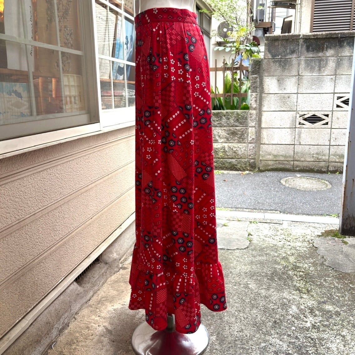 70'S USA Vintage flower patchwork printed tiered skirt。