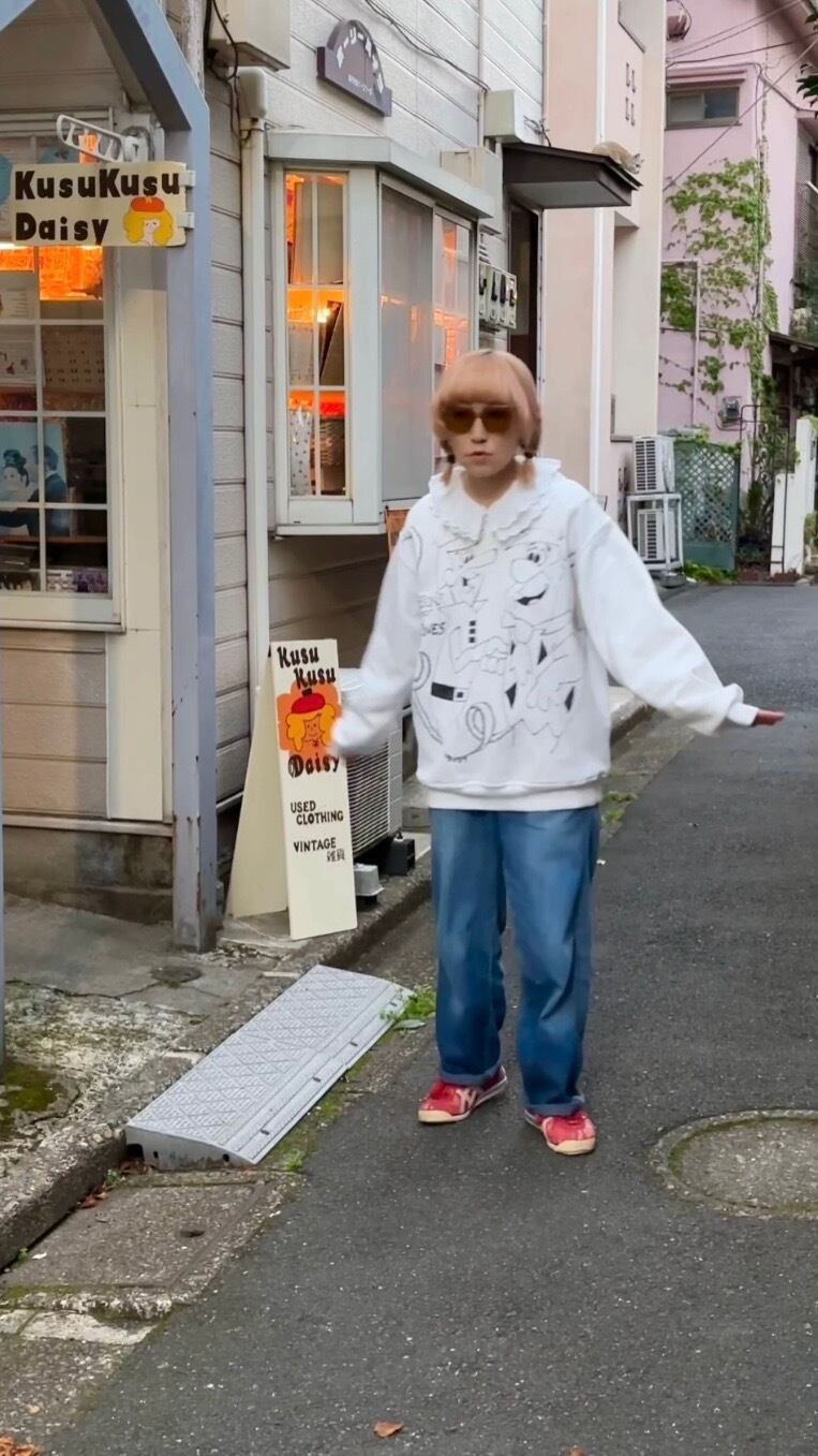 ゆったりとしたサイズ感でレディース、メンズ供に着用頂けるかと思います。