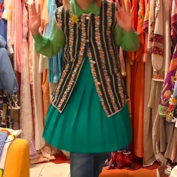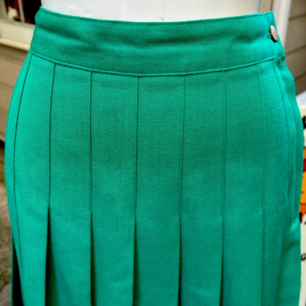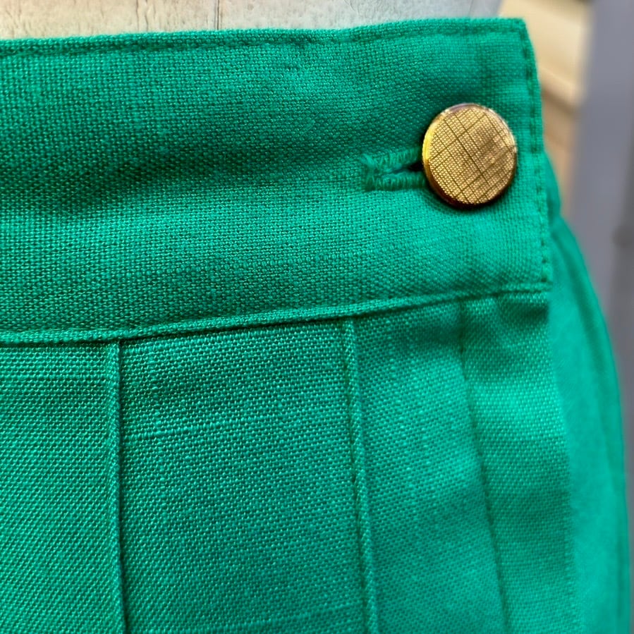 プリーツスカートはヴィンテージならではなグリーンのカラーや織りの入った生地感がとっても可愛い1着です。