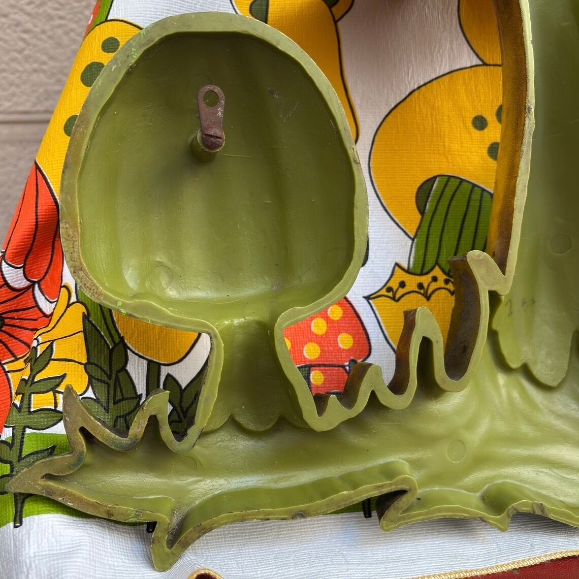 製造時からと思われる裏側のふちにペイントの跡や薄っすらとナンバーのマジック跡や若干のシミ、金具に錆び、表側の1番大きなキノコの笠に赤とグリーンの線のようなペイント跡、所々擦れによるペイントの剥がれが見られますが、経年感も込みでヴィンテージならではな、とっても素敵な雰囲気があります。