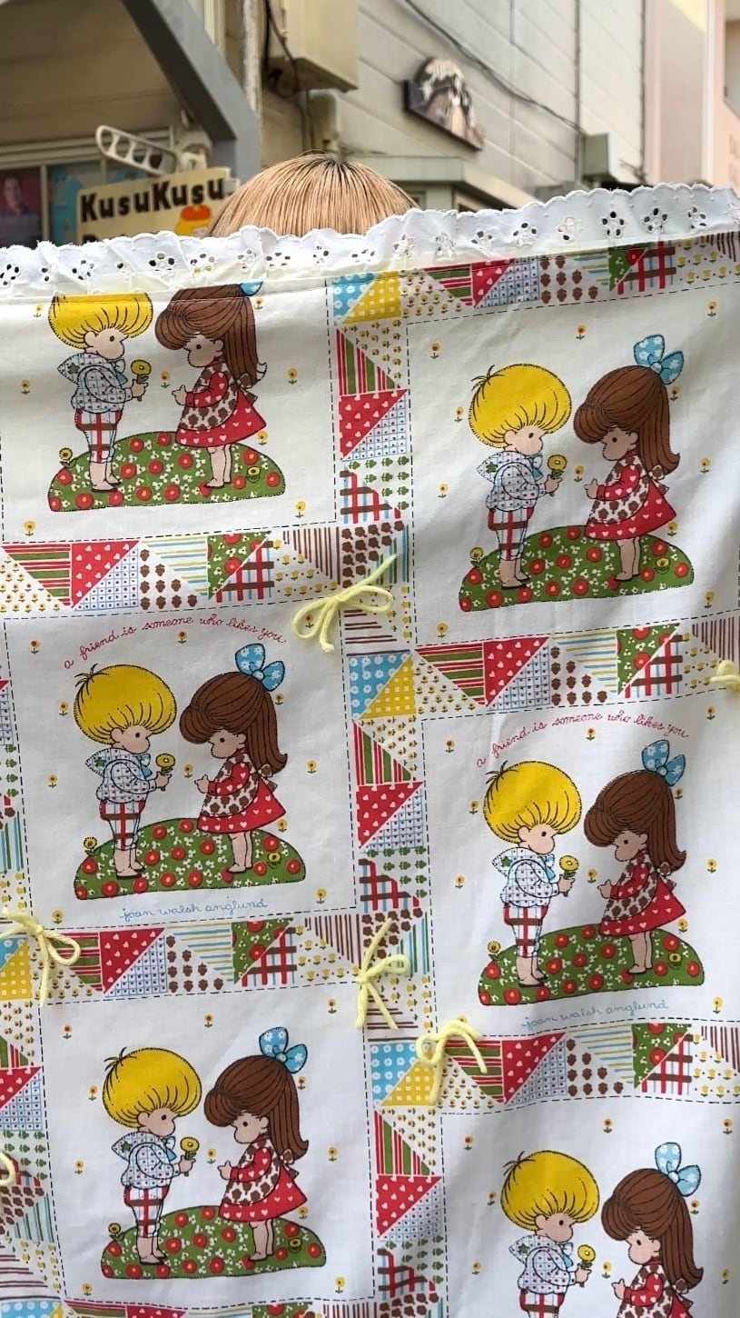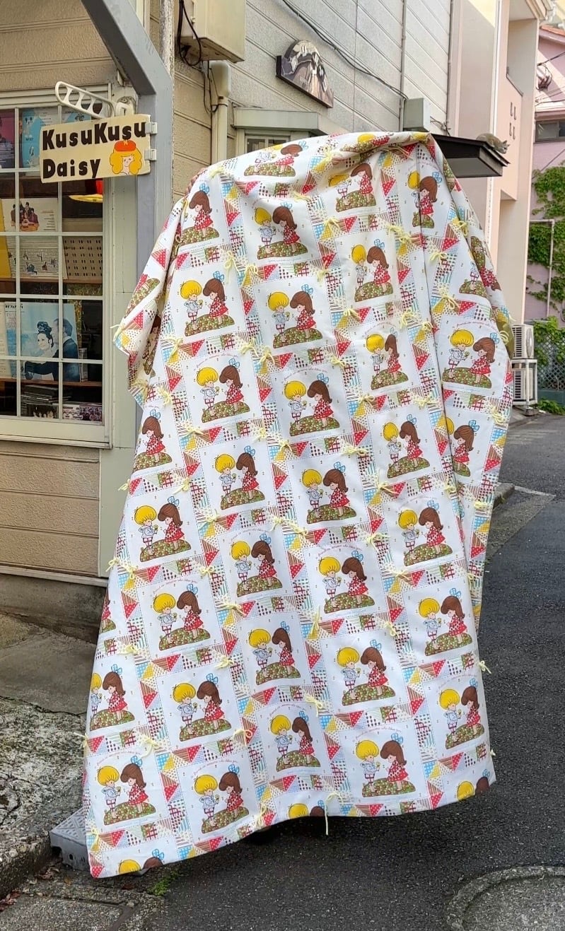 70s USA Vintage patchwork print quilt cover。
