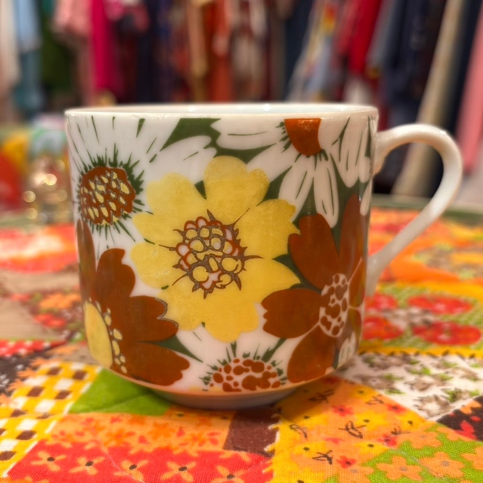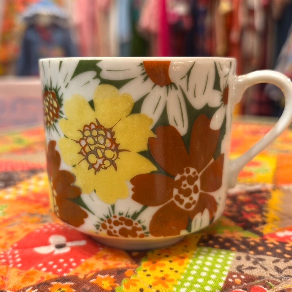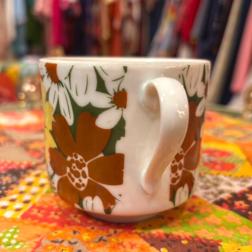 70年代 ヴィンテージ フラワー柄 陶器製 マグカップです。