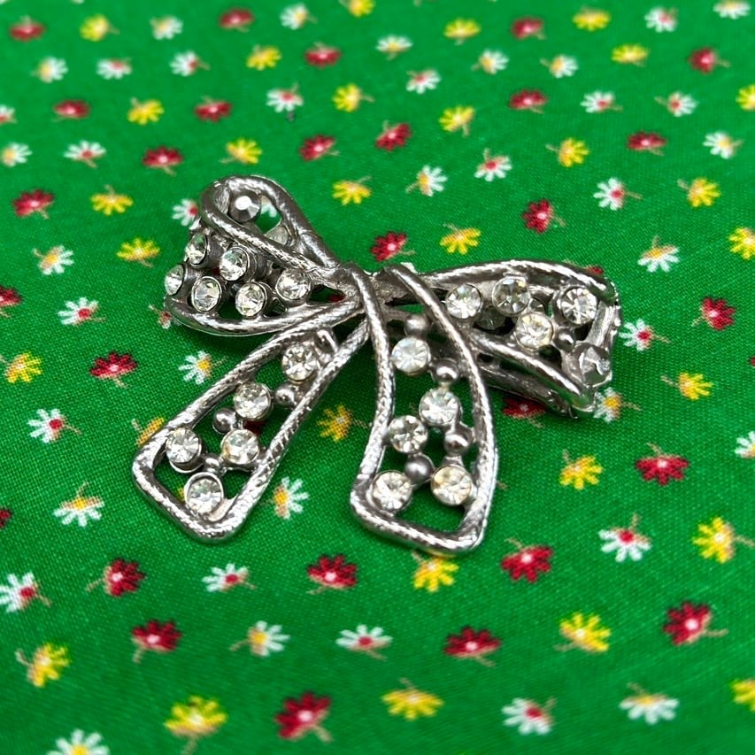 Vintage rhinestone ribbon broach